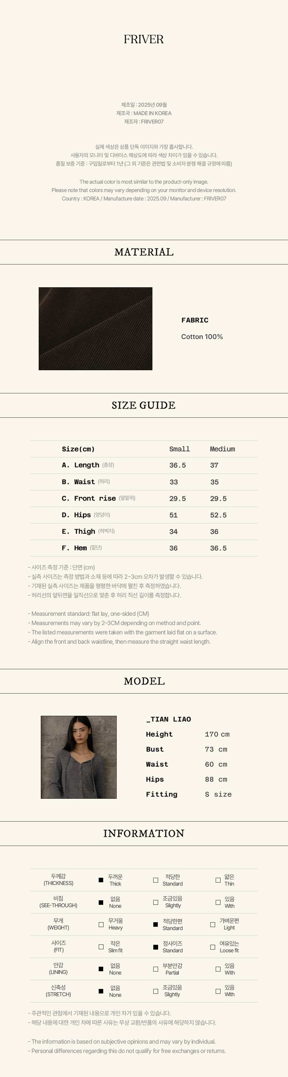 One tuck corduroy short pants FRFA02PT06_Dark brown