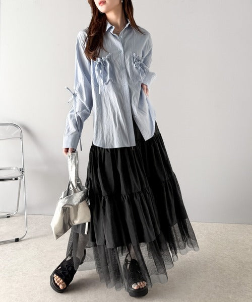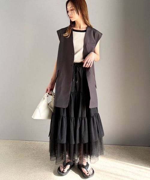 裾部分にはレイヤード風にチュール素材をドッキングし、
