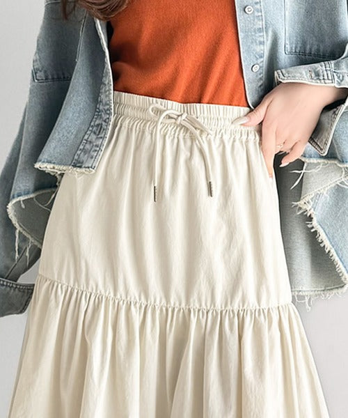 歩くたびにふわっと揺れる、愛されティアードスカート。