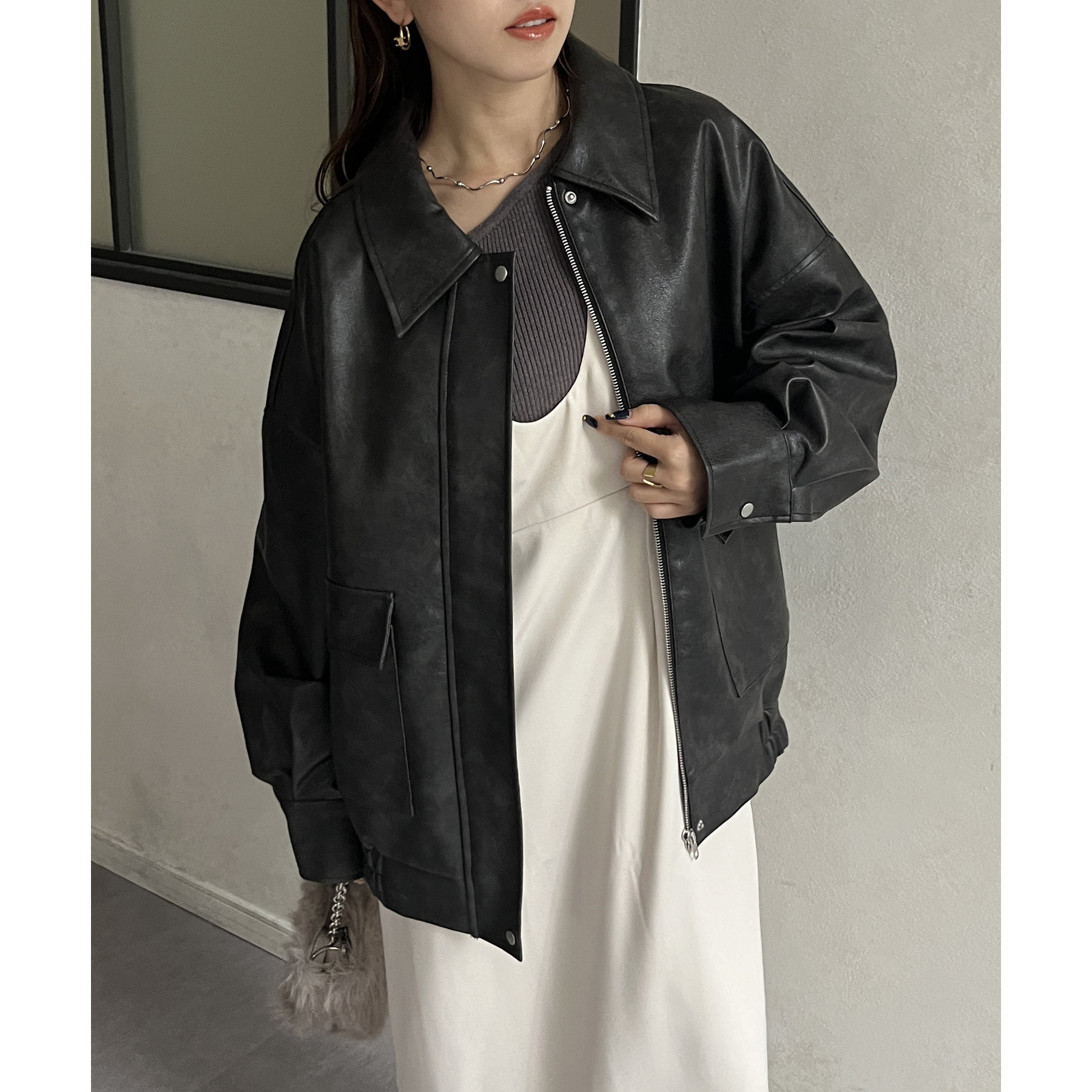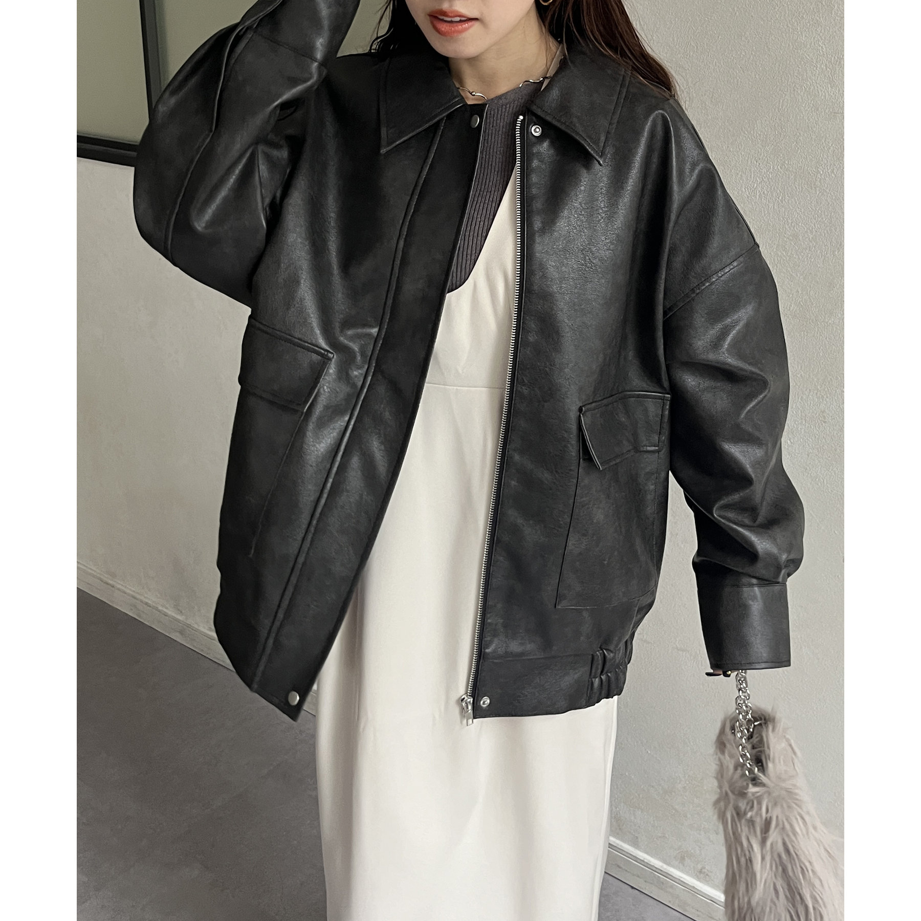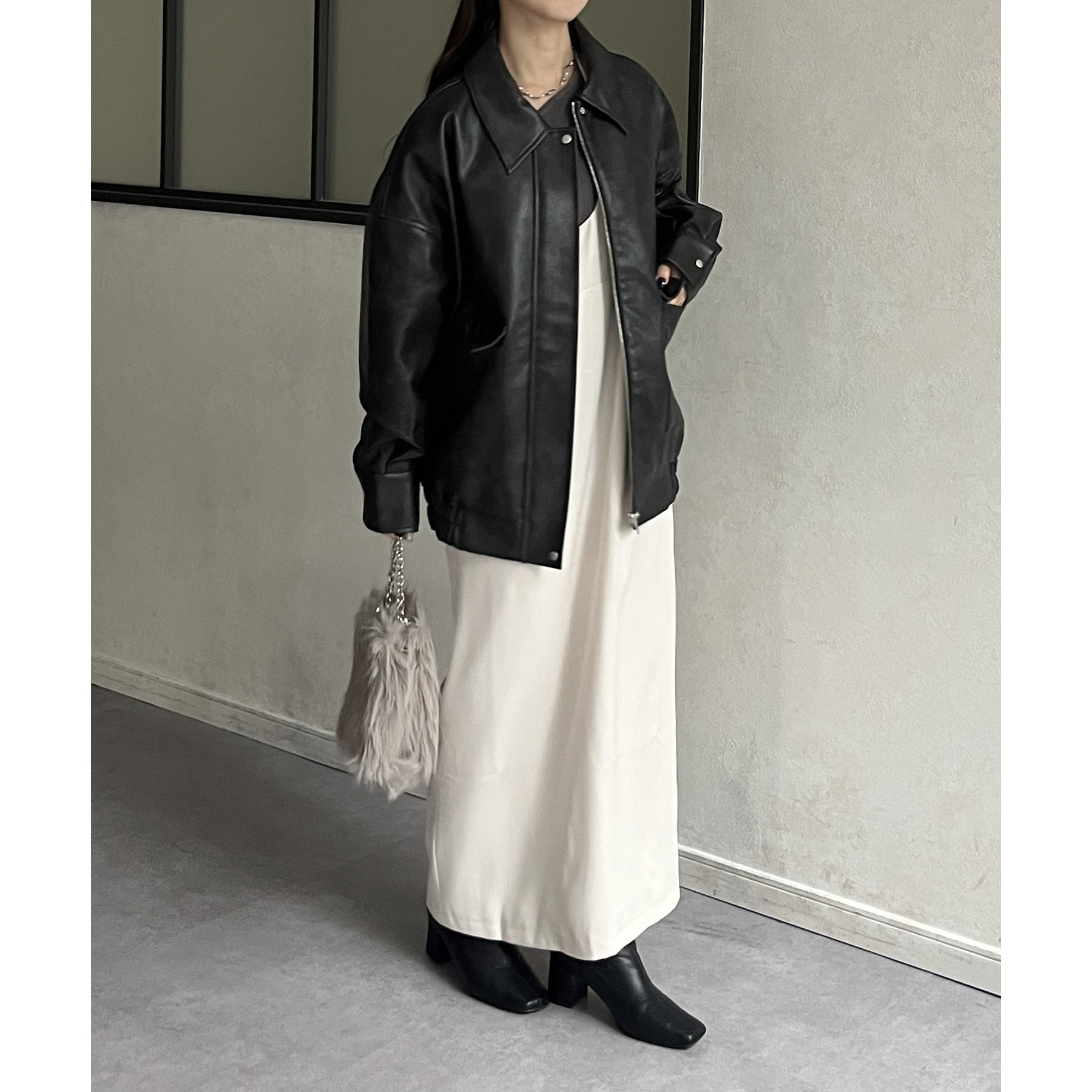 ニットワンピースの上からさっと羽織ってきれいめに、