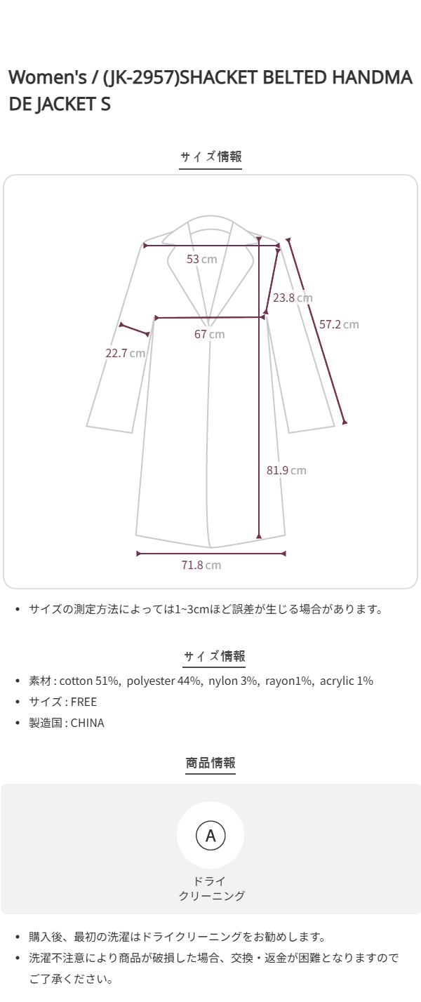 (JK-2957)SHACKET BELTED HANDMADE JACKET S