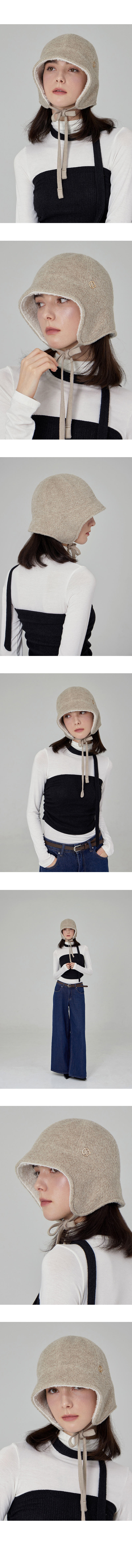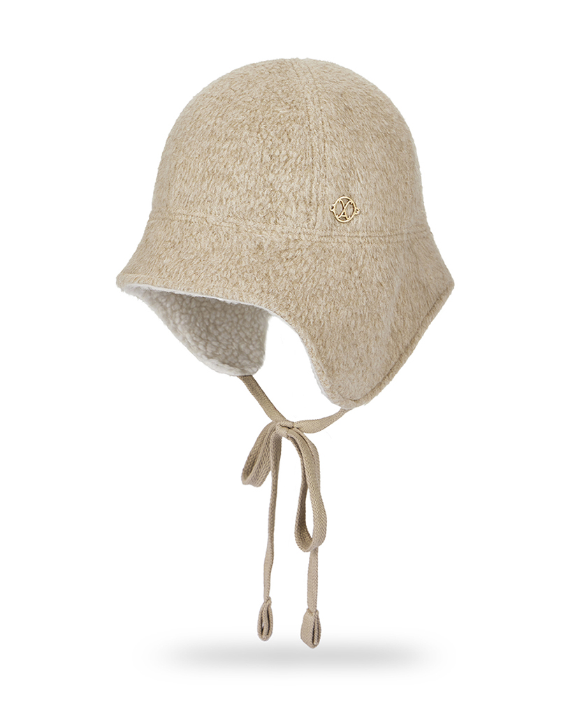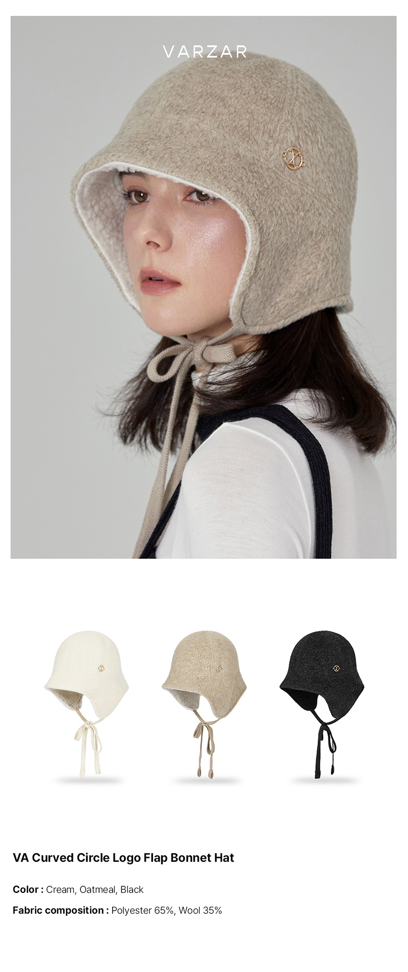 VA Curved Circle Logo Flap Bonnet Hat Oatmeal