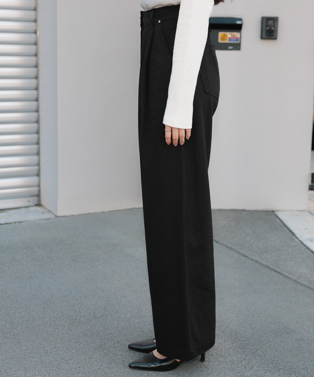 Cotton Pintuck Wide Pants [Black]