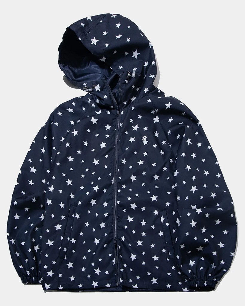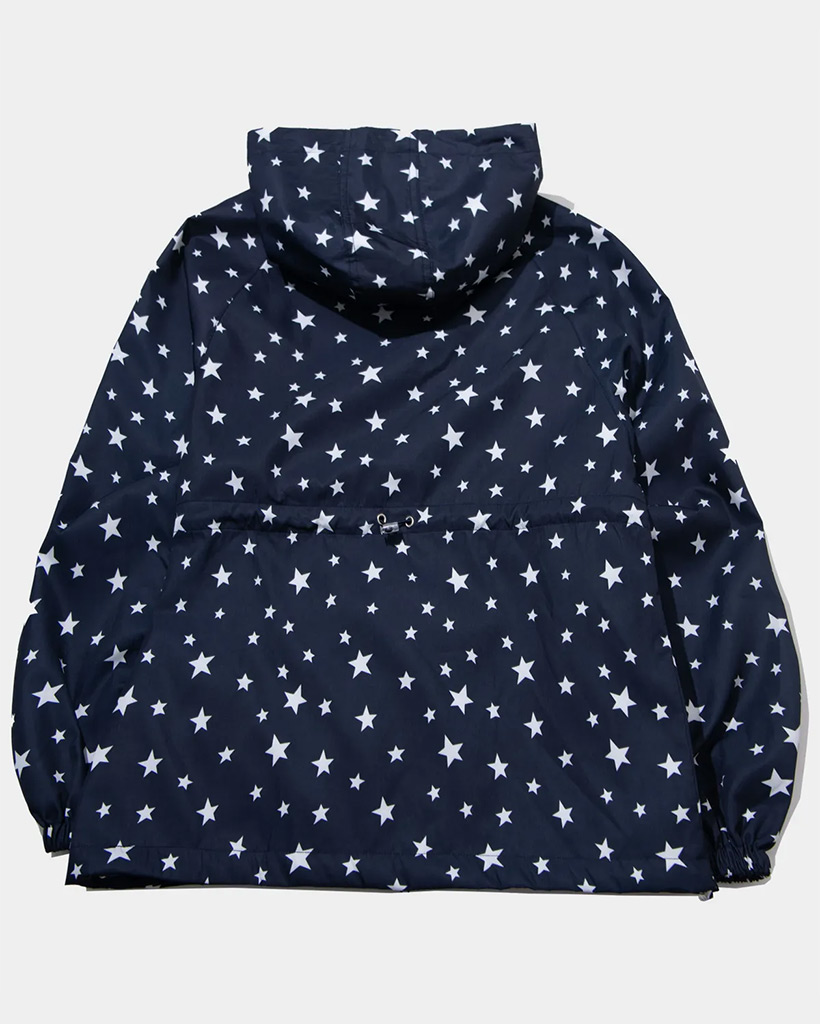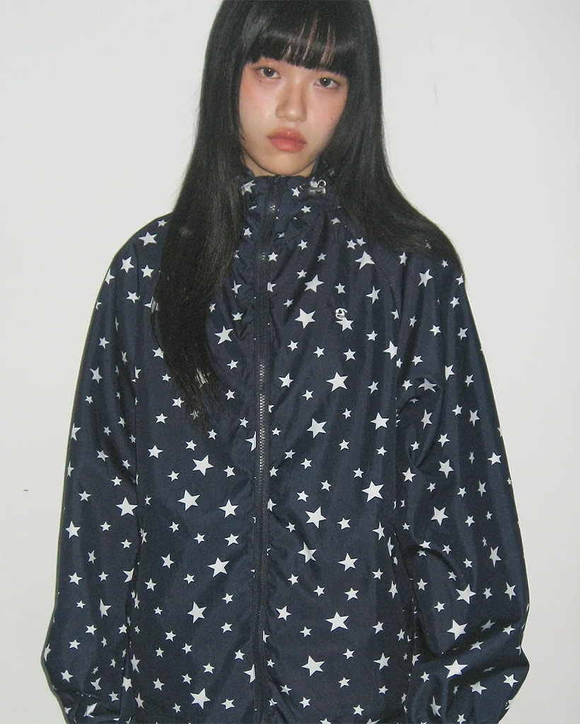Star Print Overfit Windbreaker Hooded String Windbreaker [Navy]