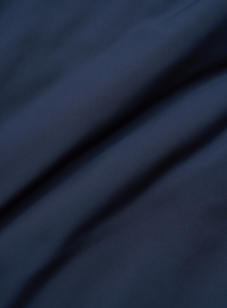 ネイビーカラーの、軽くマットなテクスチャーが特徴のポリエステルファブリックを使用。