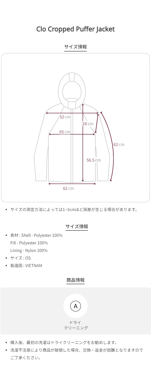 シングルブレスト、フード、ジッパー開閉仕様のパファーフードジャケットタイプです。