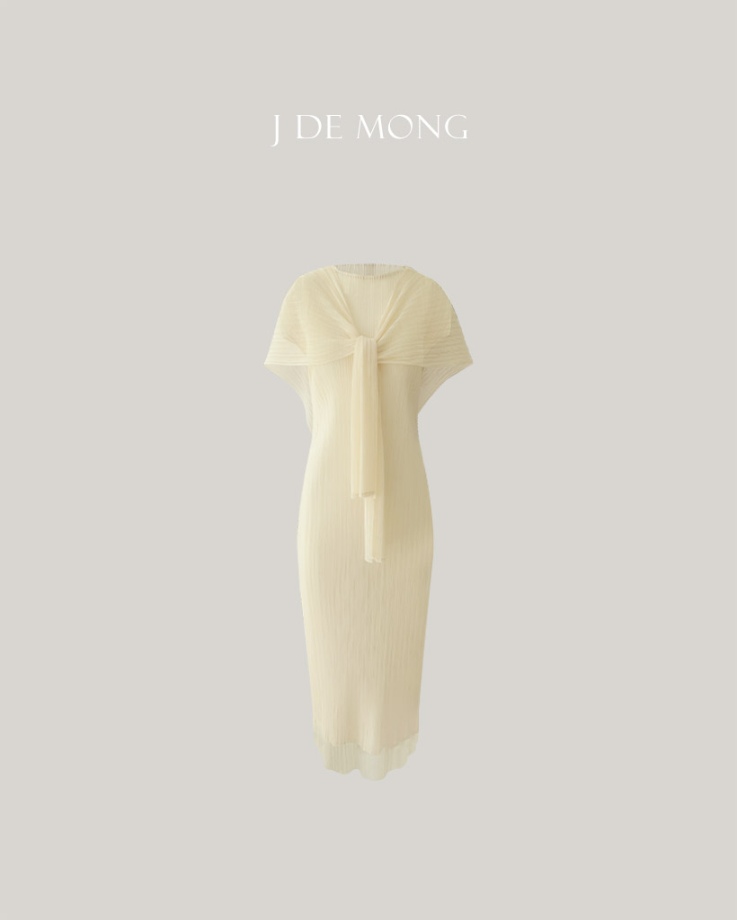 [PLEATS] Silhouette Half Shawl Dress - Choux Cream