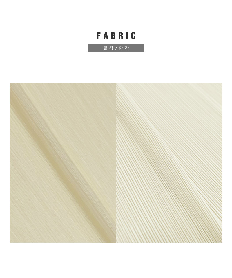 パウダリーな手触りと控えめな光沢が特徴の高級プリーツ素材に、薄手のメッシュを組み合わせた新作です。