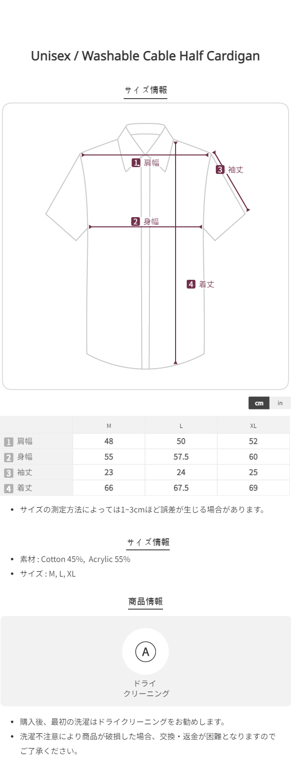Washable Cable Half Cardigan [BLACK]
