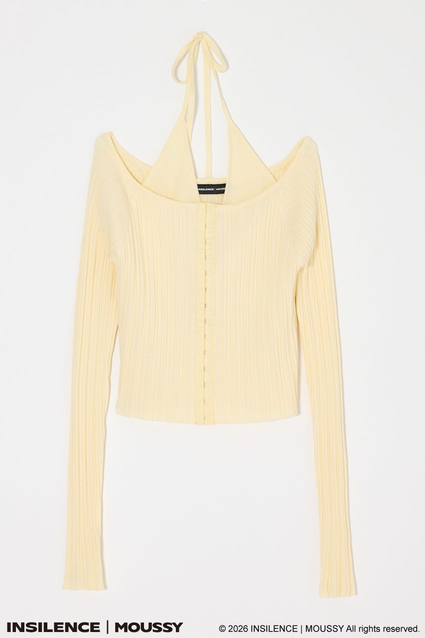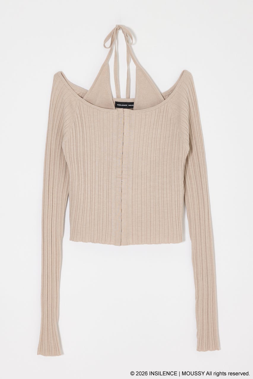 INSILENCEコラボならではのミニマルかつモードなオフショルダーニット。