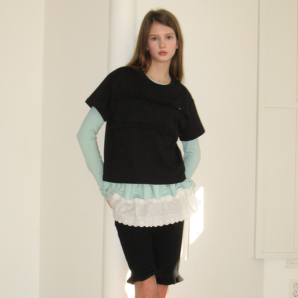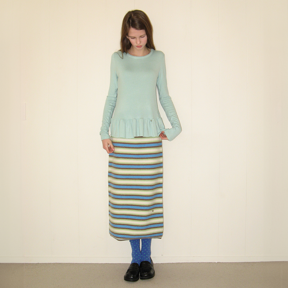 PENDANT RUFFLE LAYERED SLIM LONG SLEEVE MINT