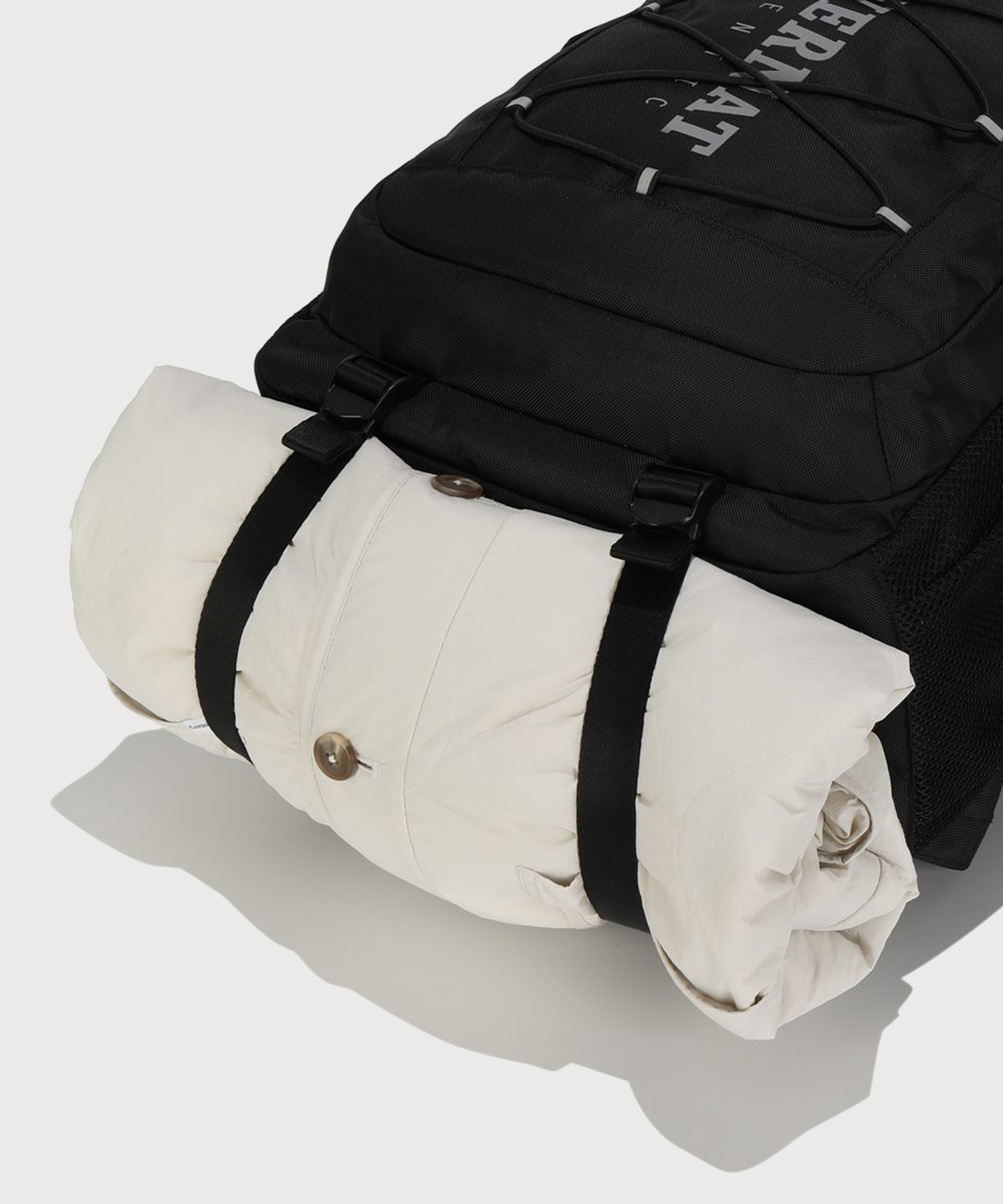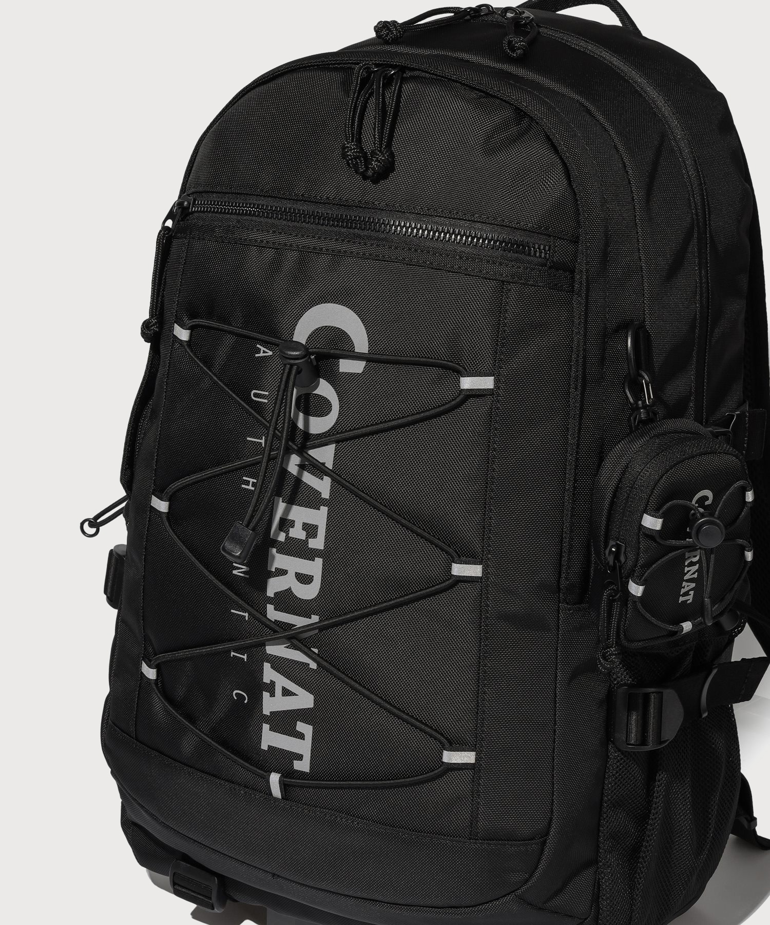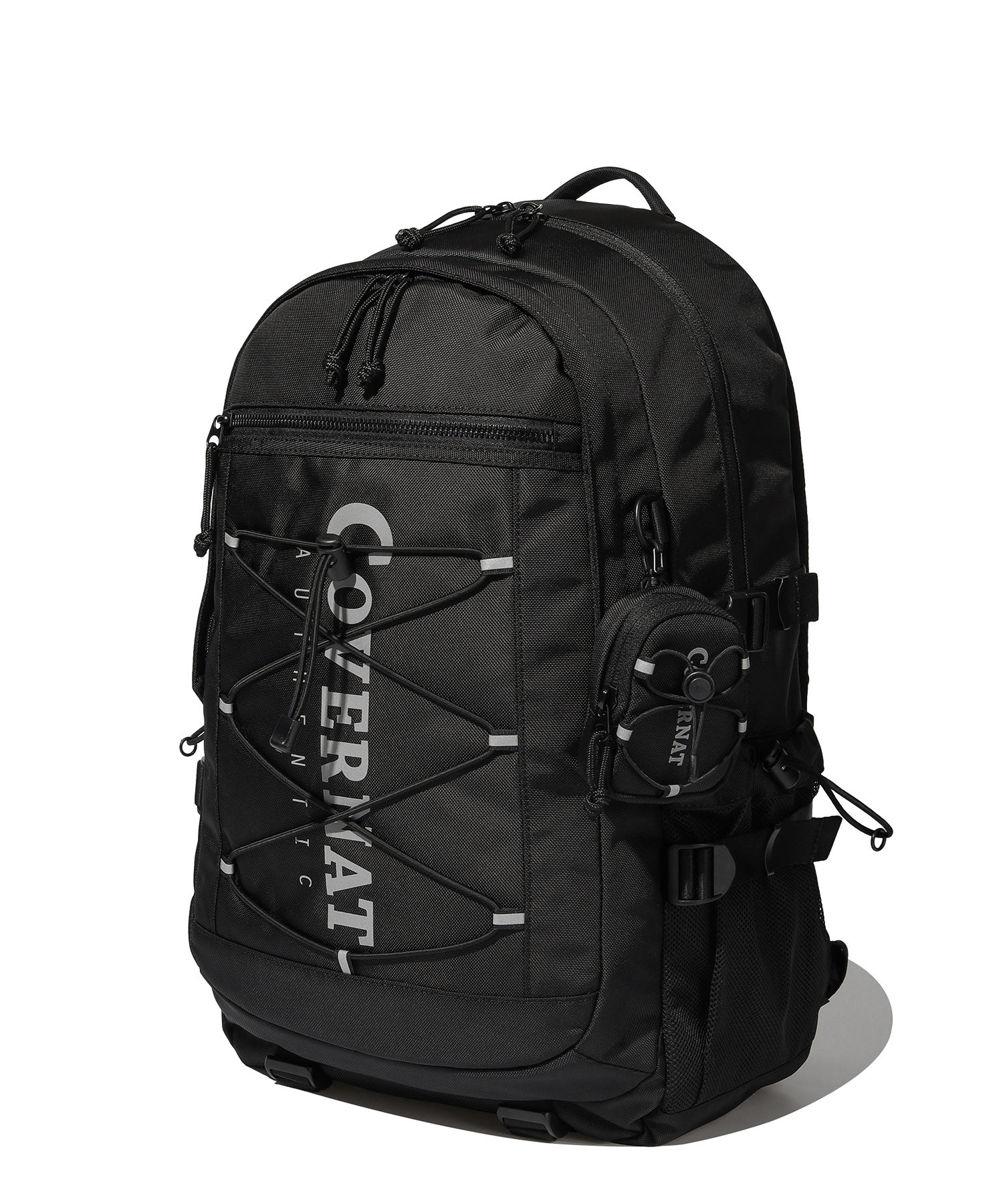 ボトムストラップを活用してアウターなど追加収納が可能で、3Mリフレクティブロゴプリントとストリングディテールでポイントを加え、サイドウェビングディテールを通じて形安定性を合わせました。