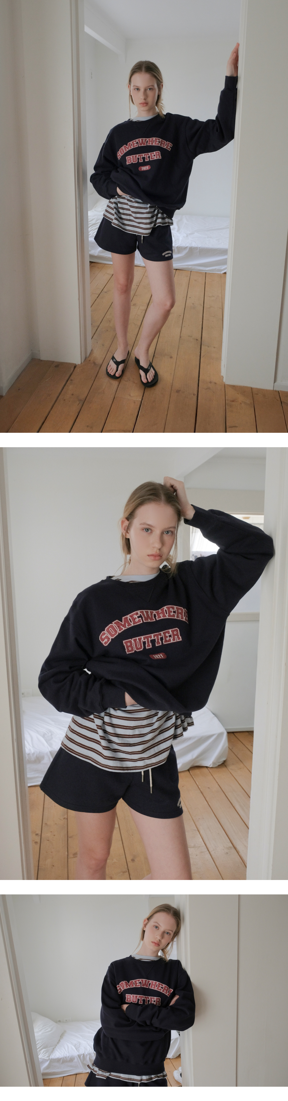 デイリーに着用しやすい『Vintage Square Logo Sweatshirt』です。テンタ・ダンブル加工を施した3段裏毛のコットン生地を使用し、しっかりしながらも柔らかなタッチ。ルーズなフィットで快適な着心地です。フロントのネックラインに三角ガゼットディテールを加えてポイントにし、内側の後ろネックにはヘリテープを当てて丈夫に仕上げました。サムウェアバターのロゴプリントでヴィンテージムードを表現。単品でも使いやすく、『Vintage Square Logo Sweat Shorts』とセットアップでも着用できます。