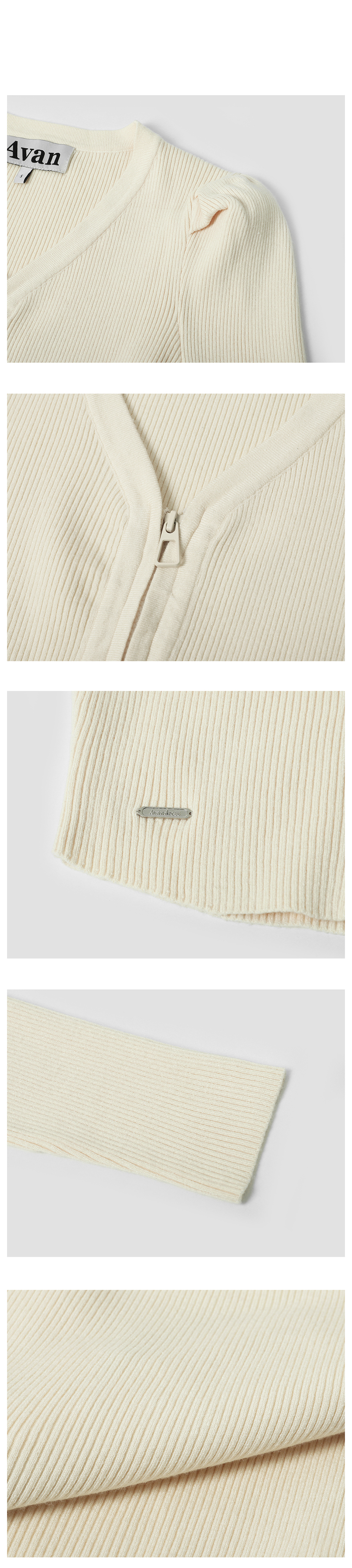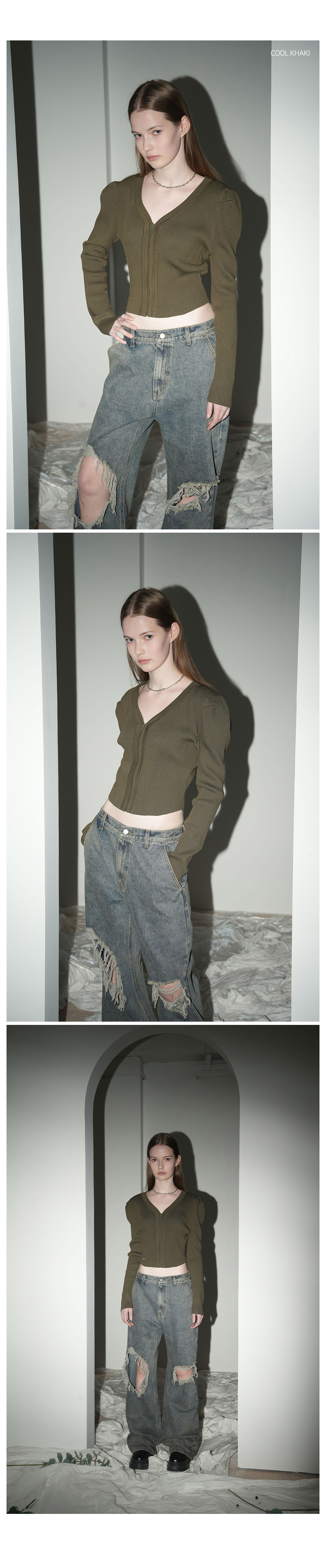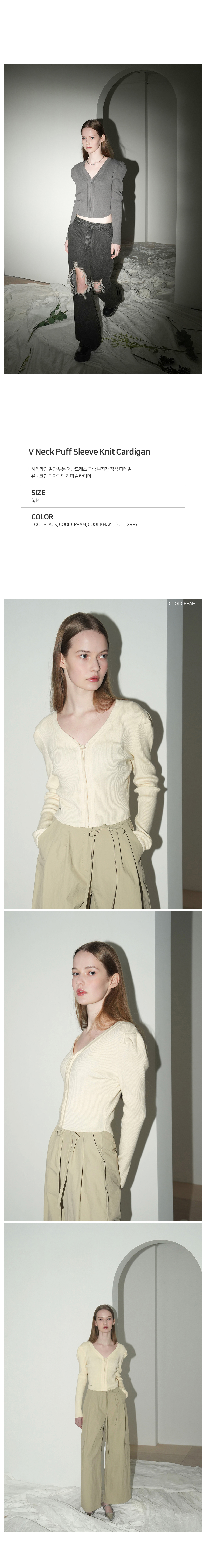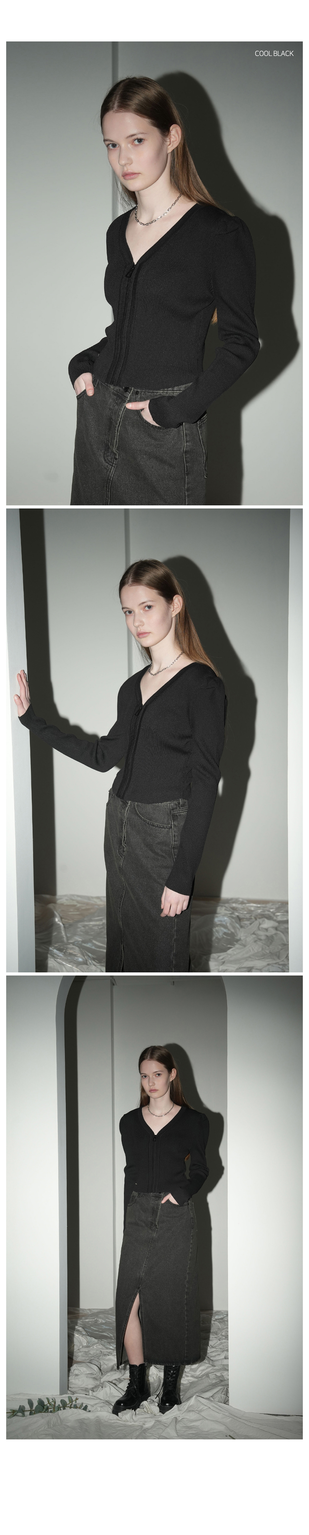 V Neck Puff Sleeve Knit Cardigan - 4COL