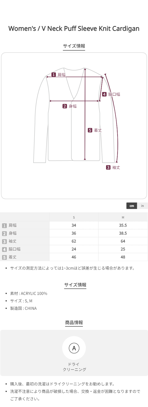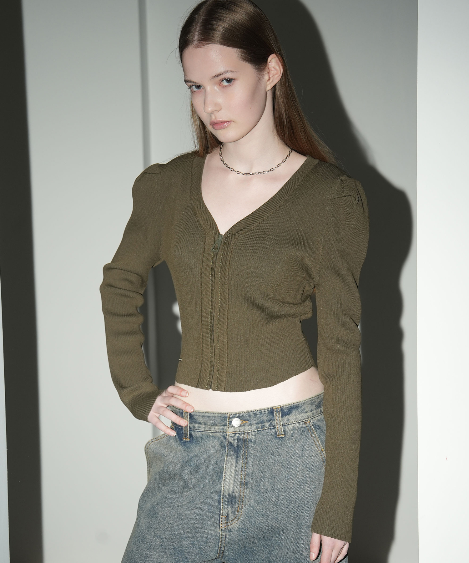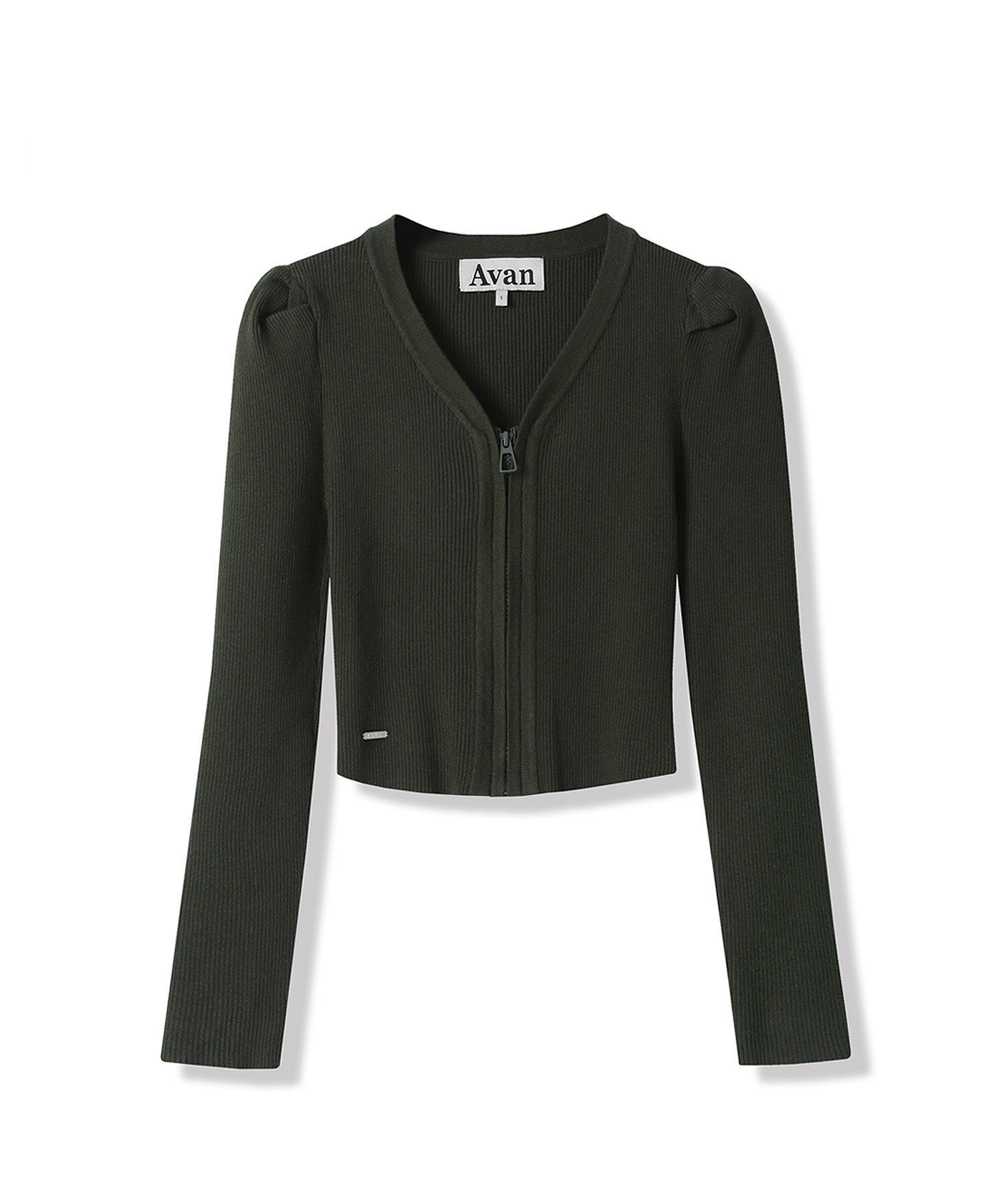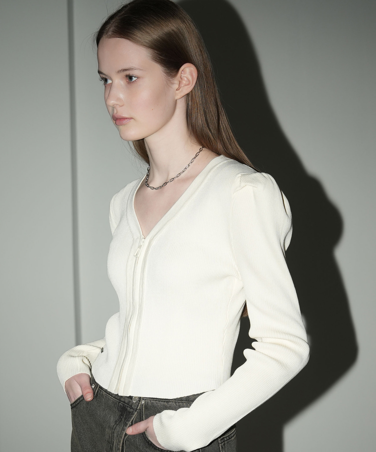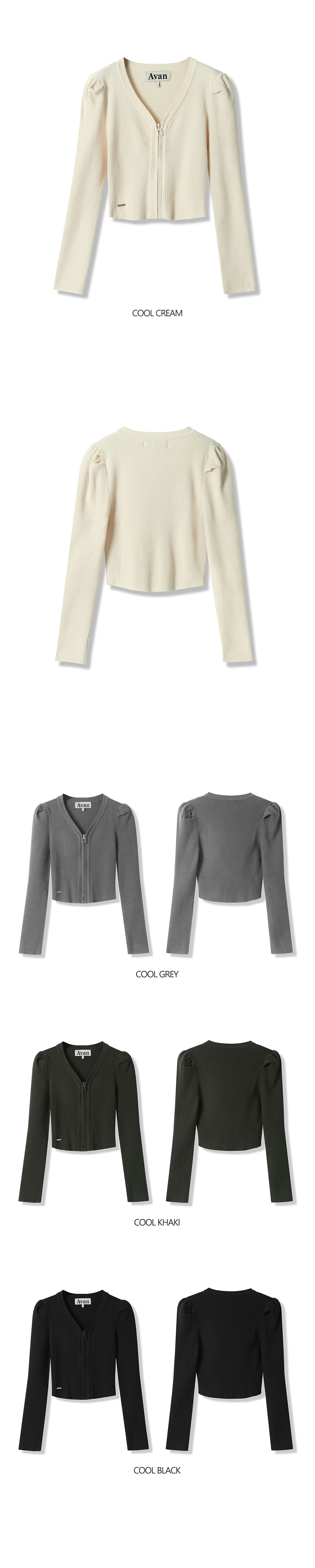 V Neck Puff Sleeve Knit Cardigan - 4COL