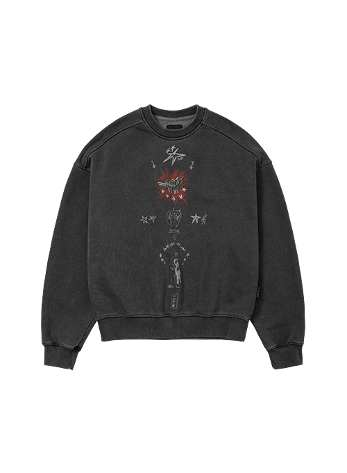Blessing Doodle Washed Sweatshirt [CHARCOAL]