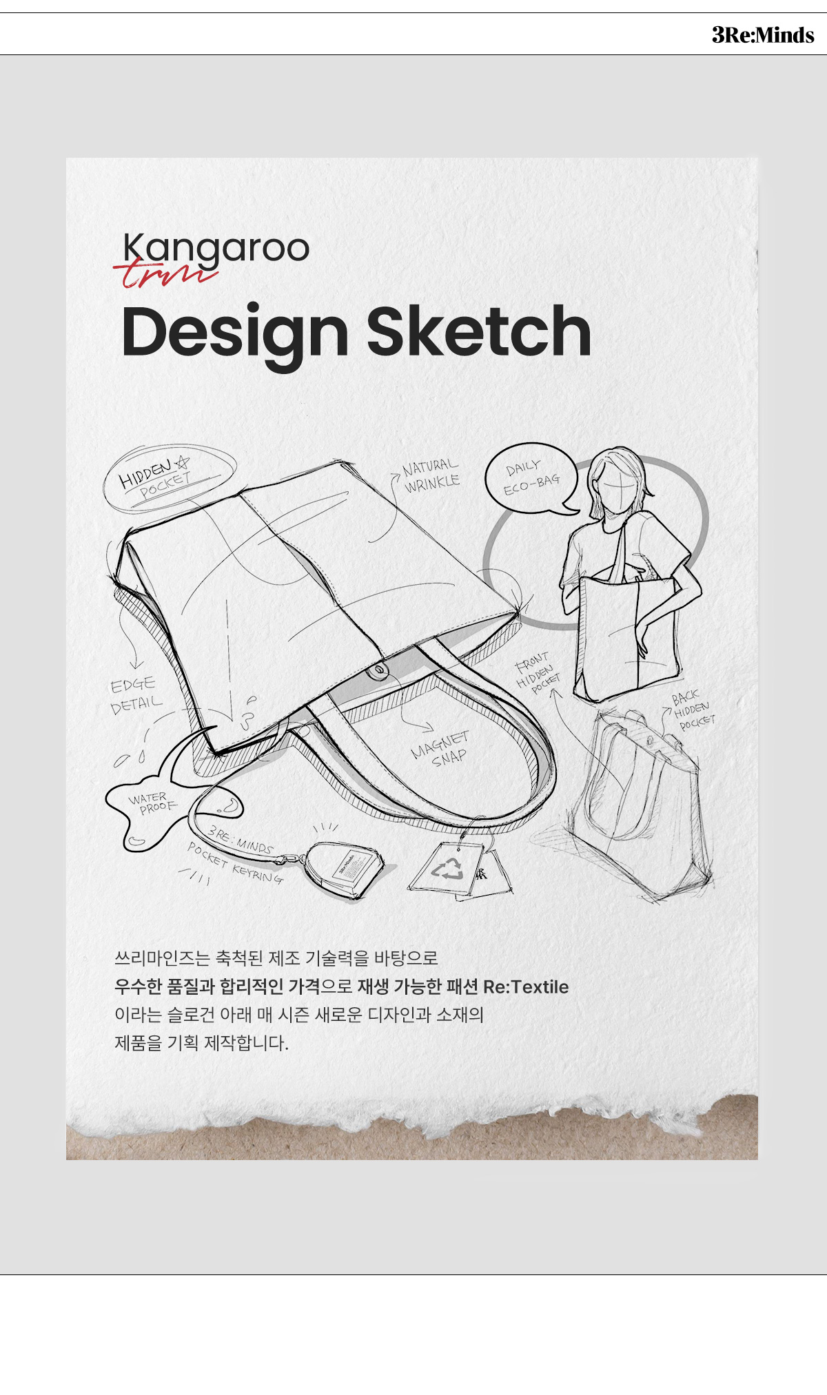 スリーマインズは、Recycle, Recharge, Recreate(リサイクル素材の再利用および再生産)を目的とした3つの精神に基づいて製品を作り出します。