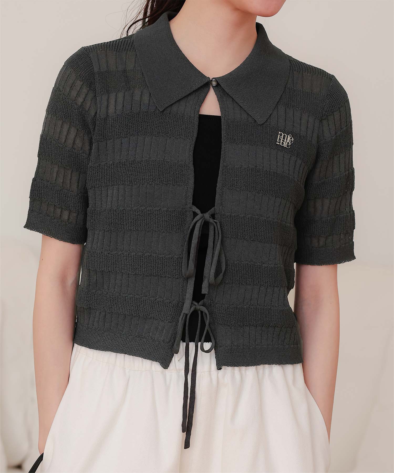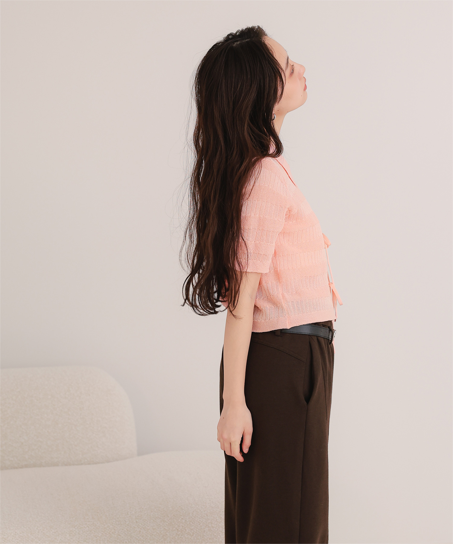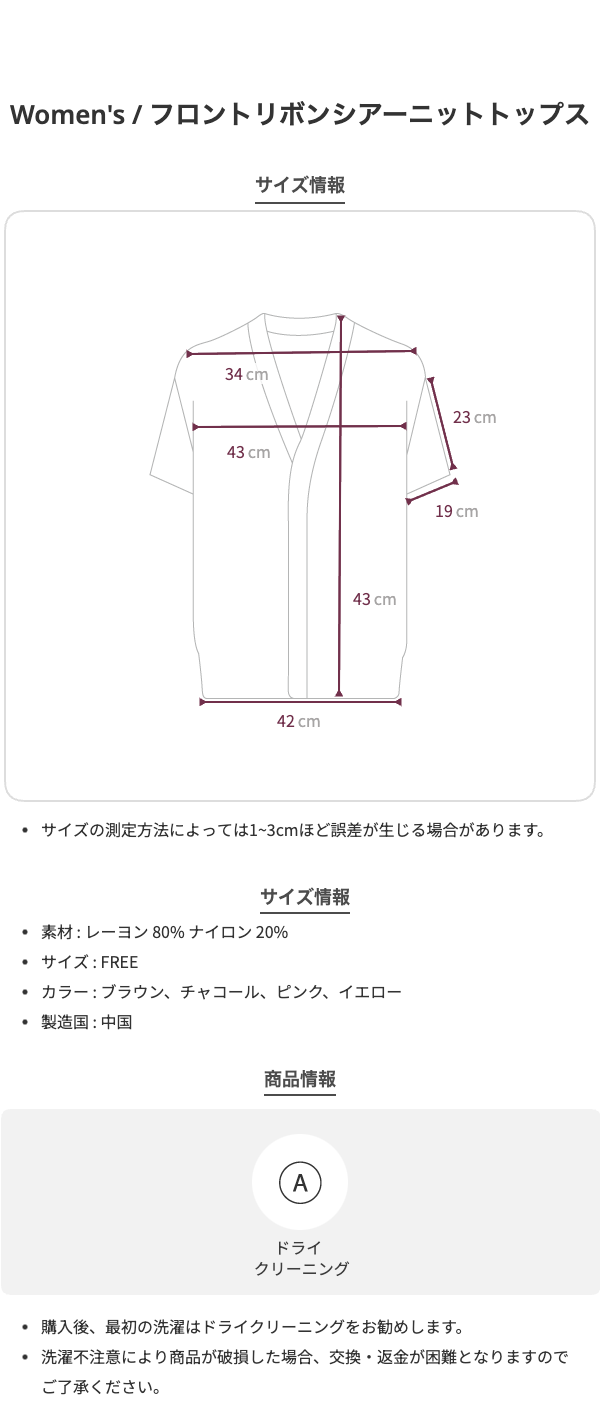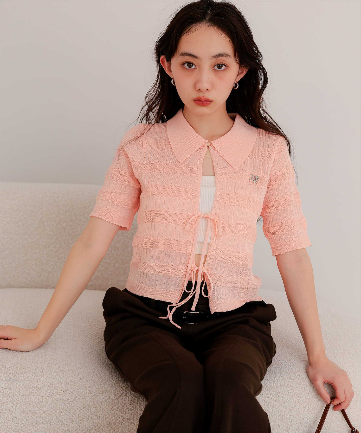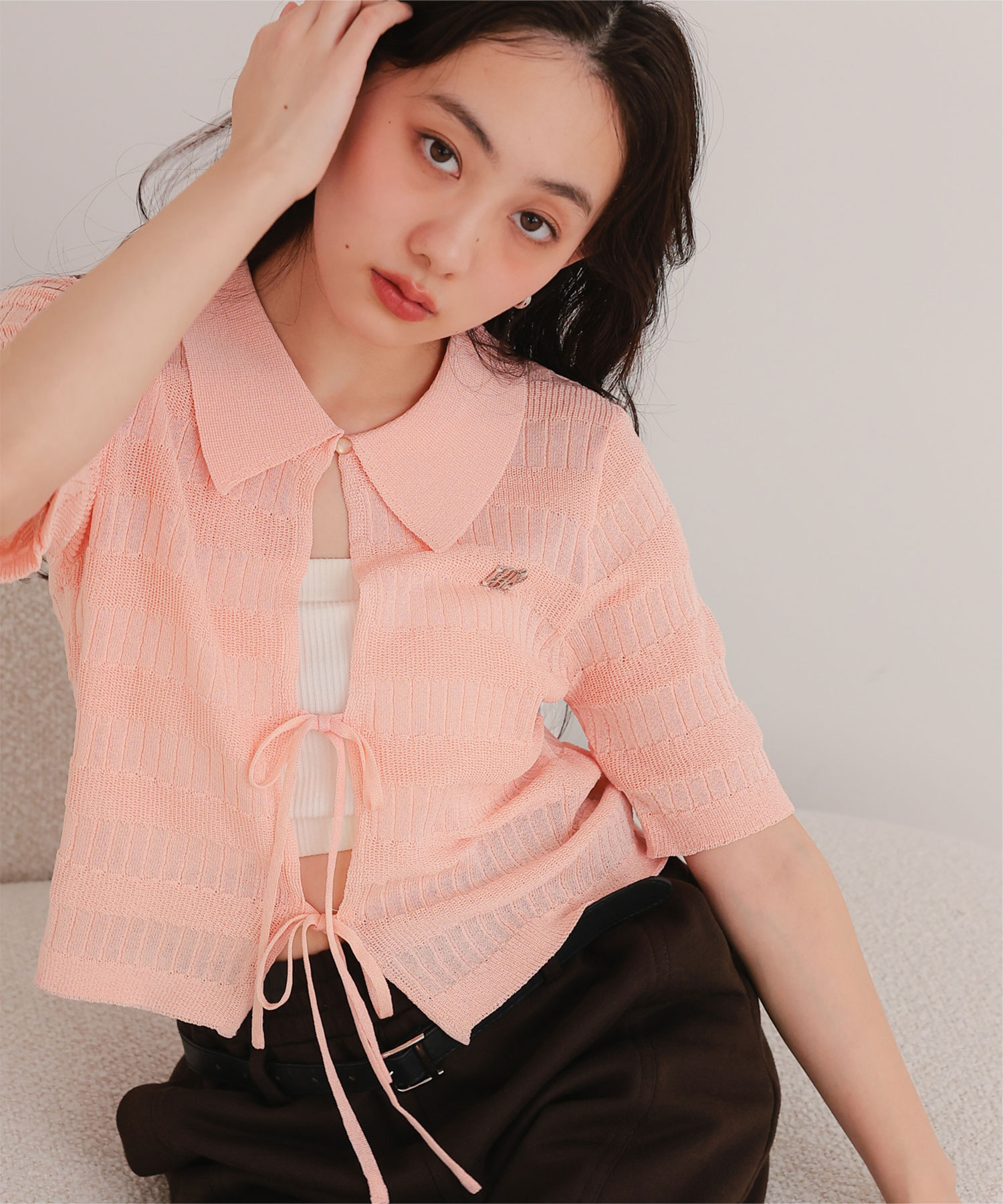 フロントリボンシアーニットトップス