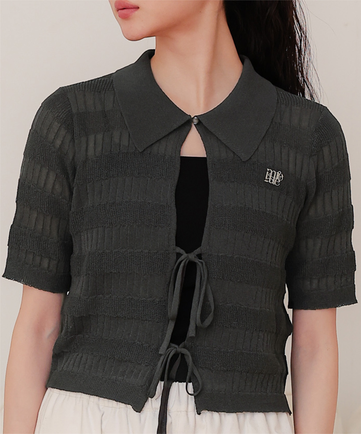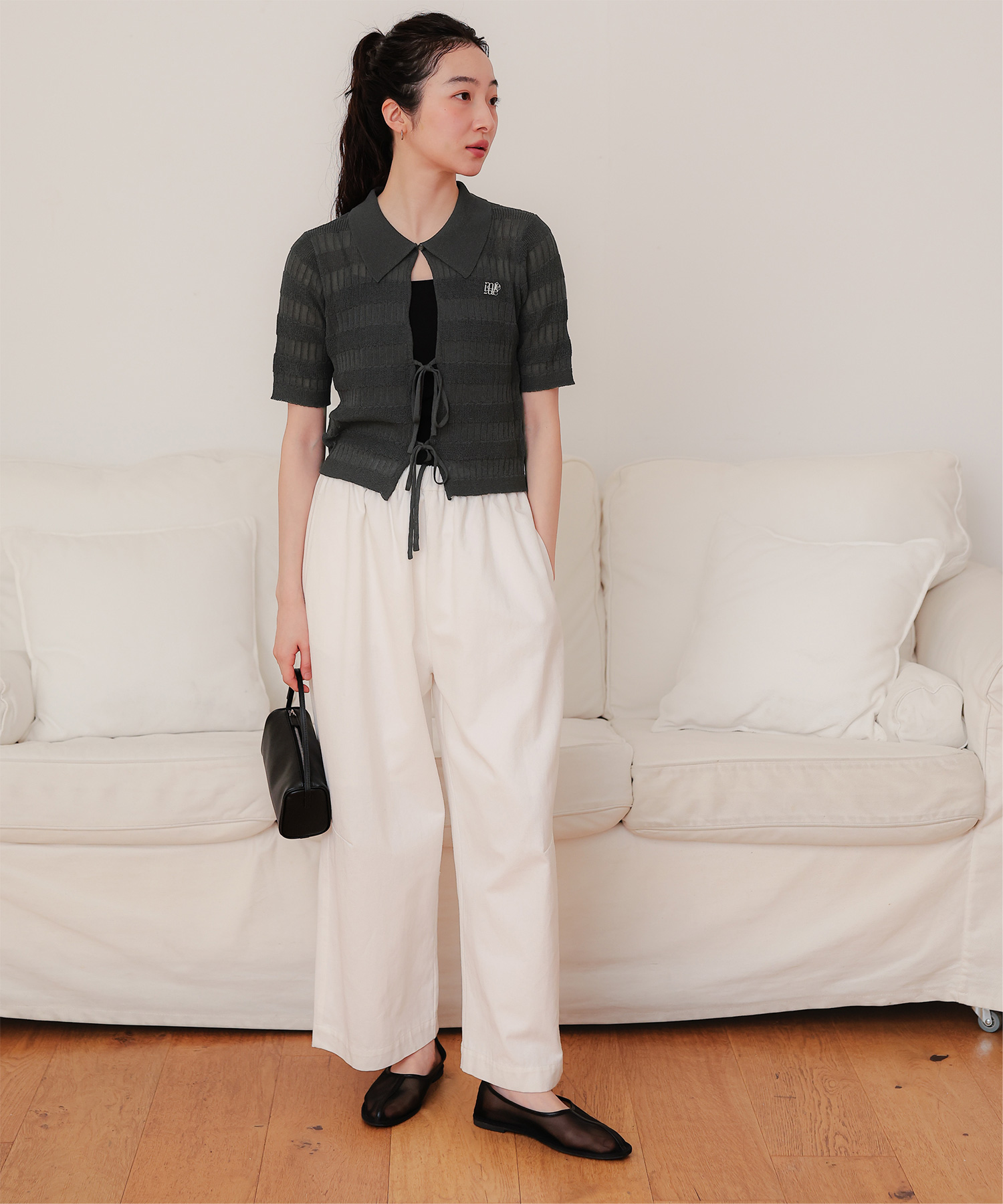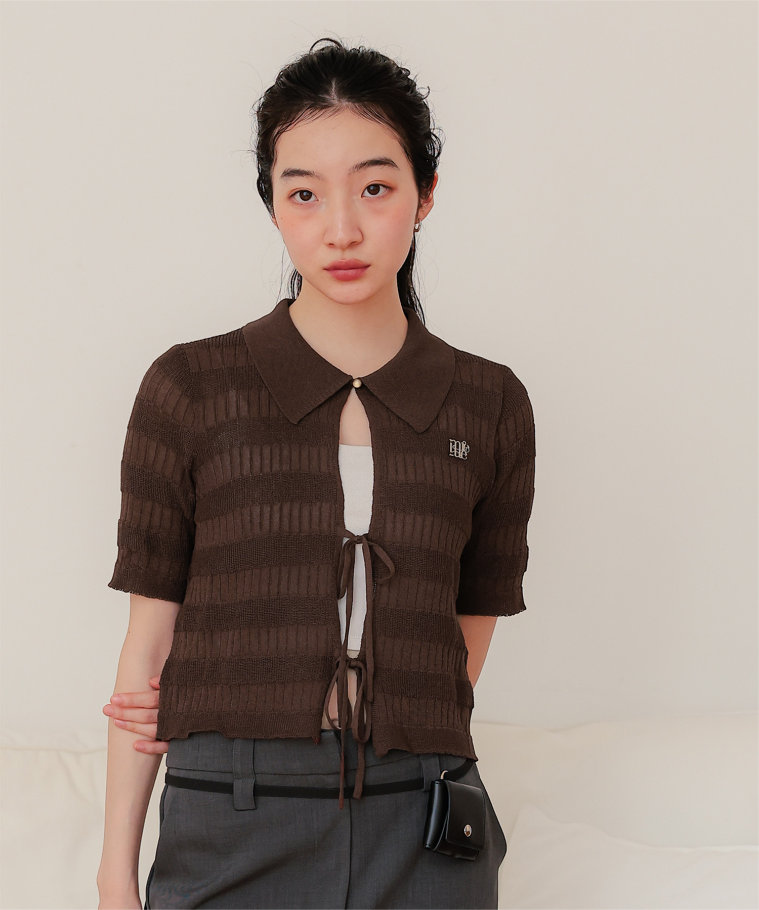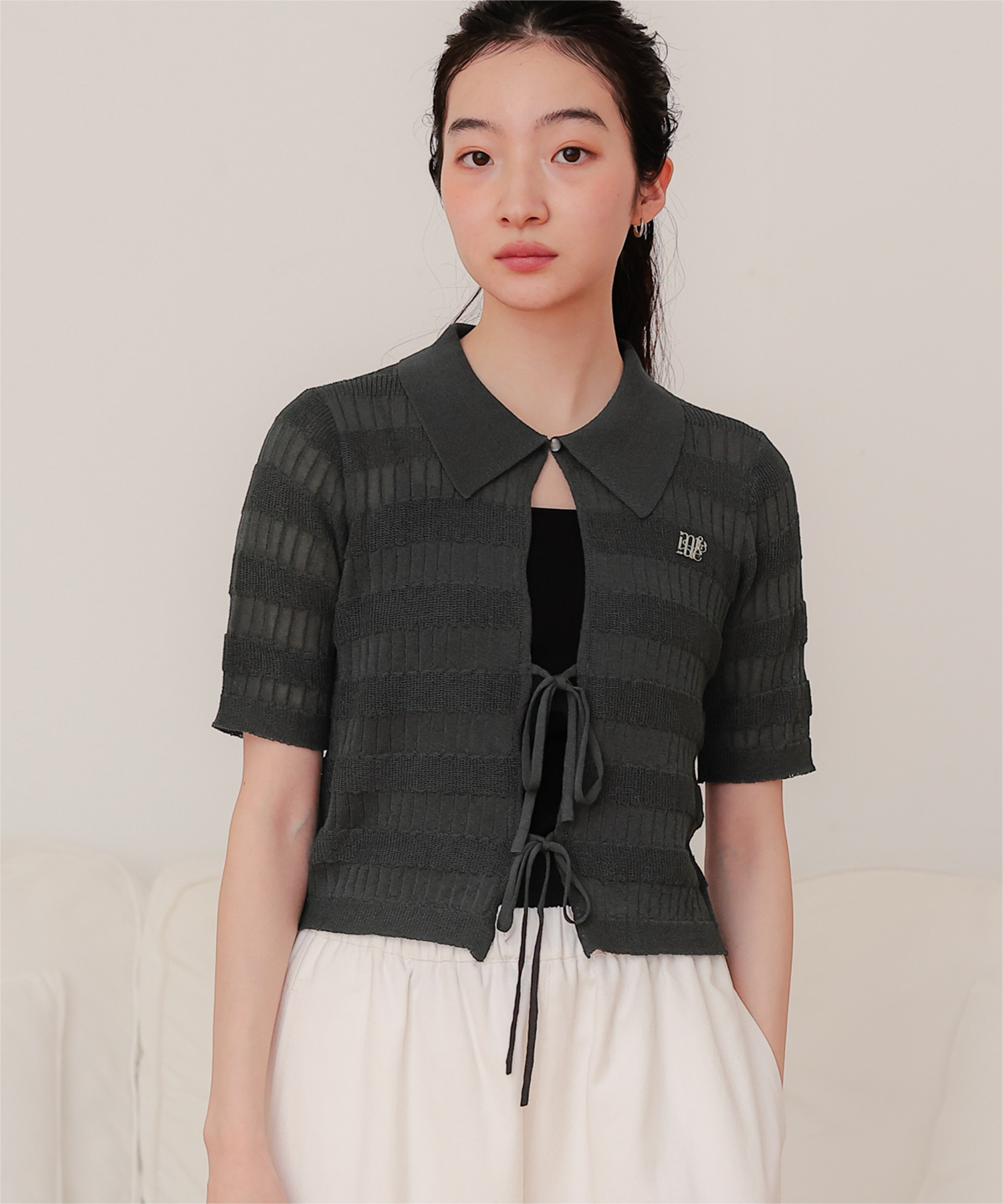 フロントリボンシアーニットトップス