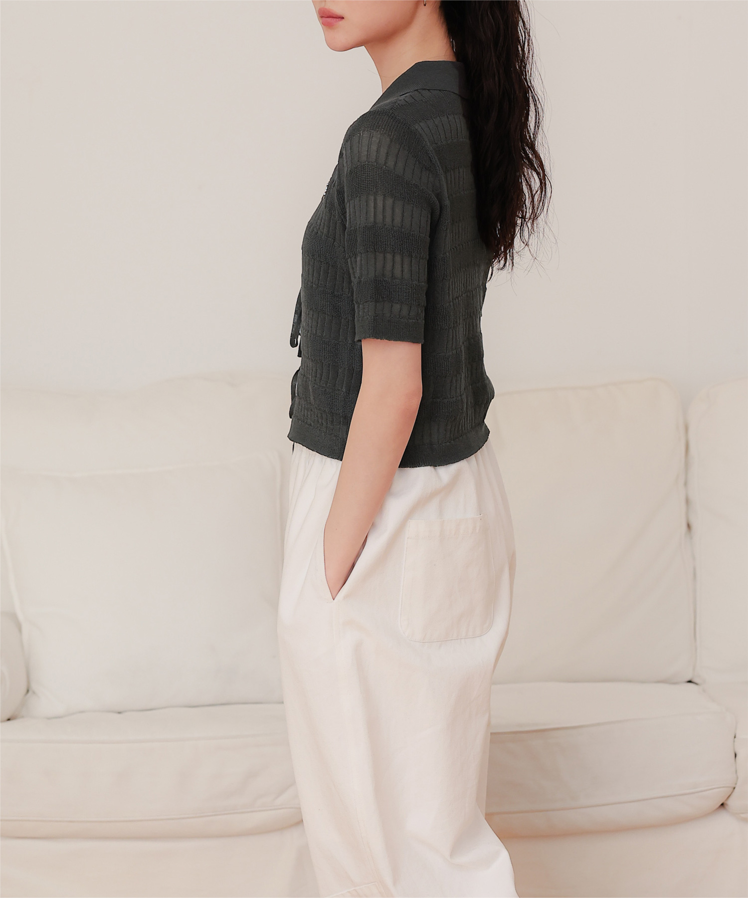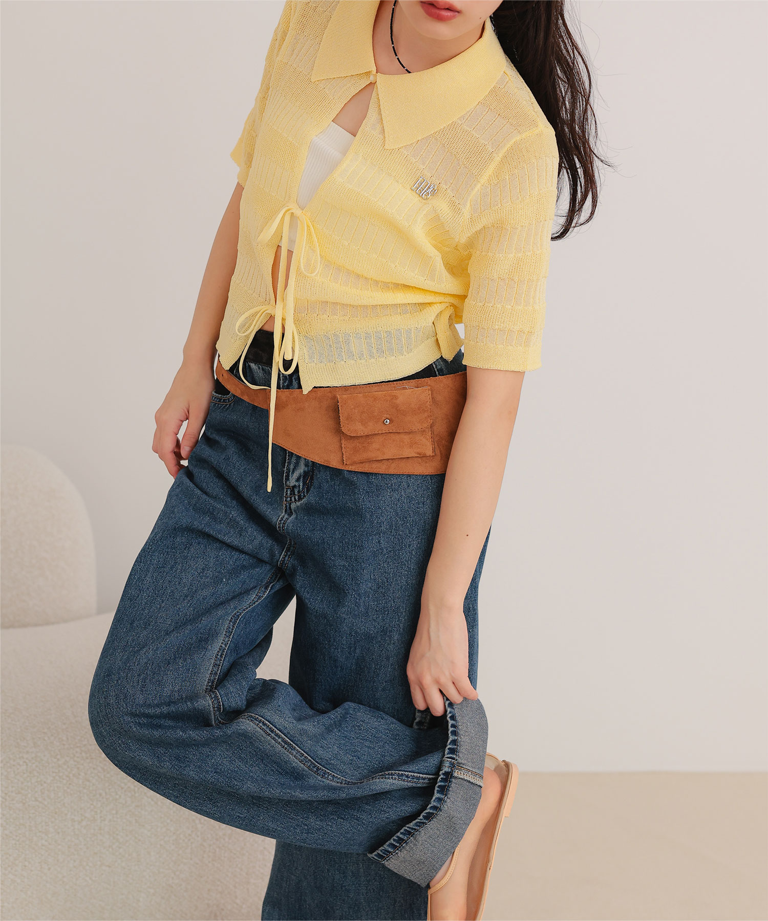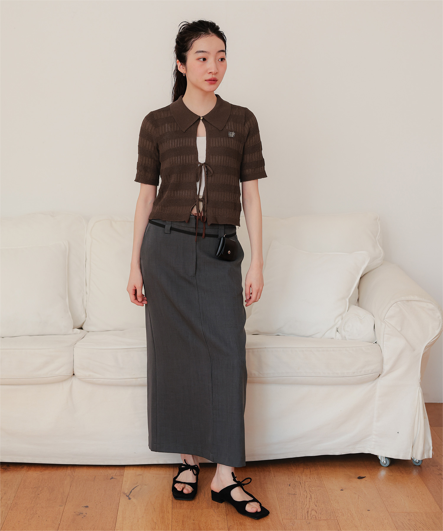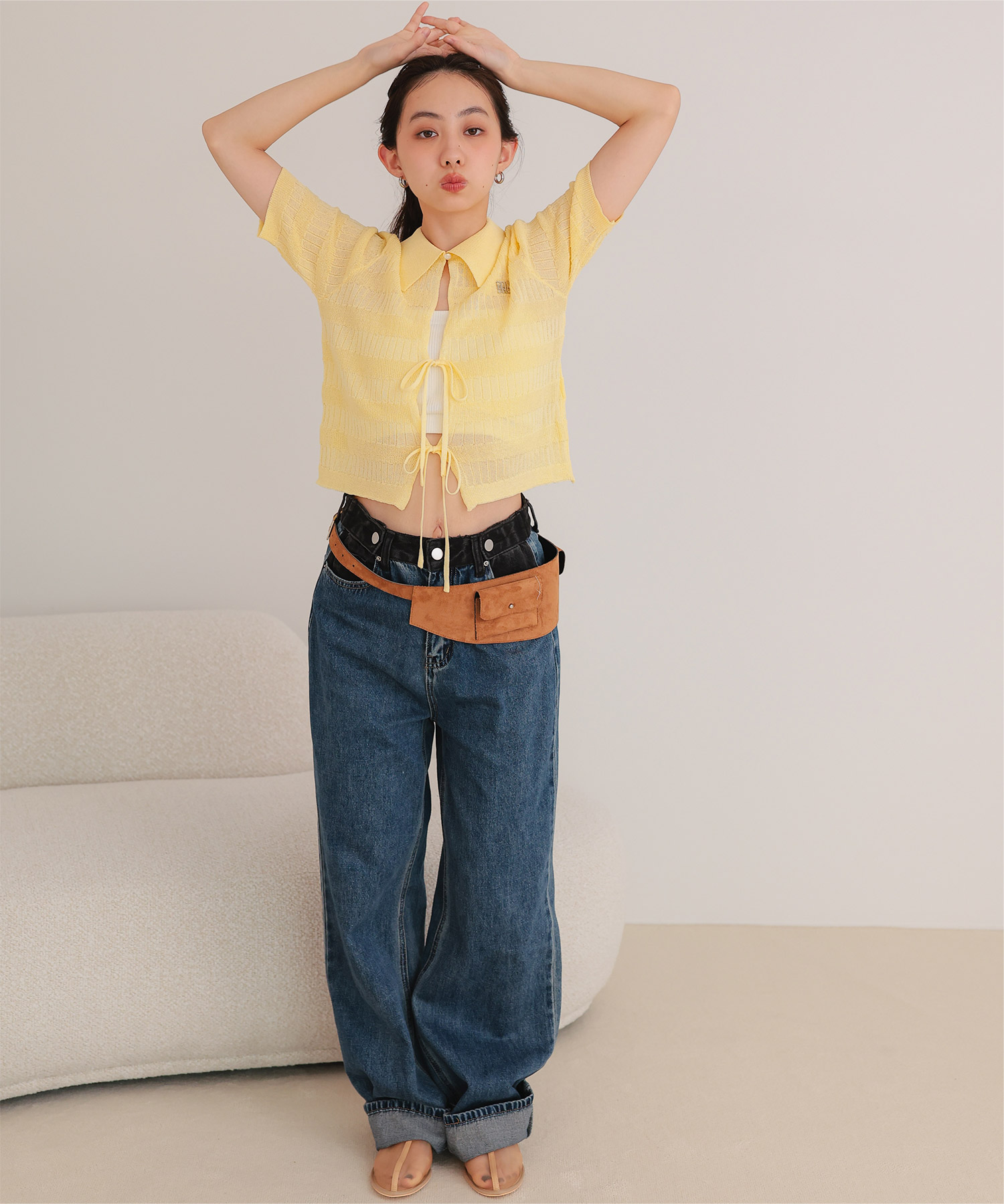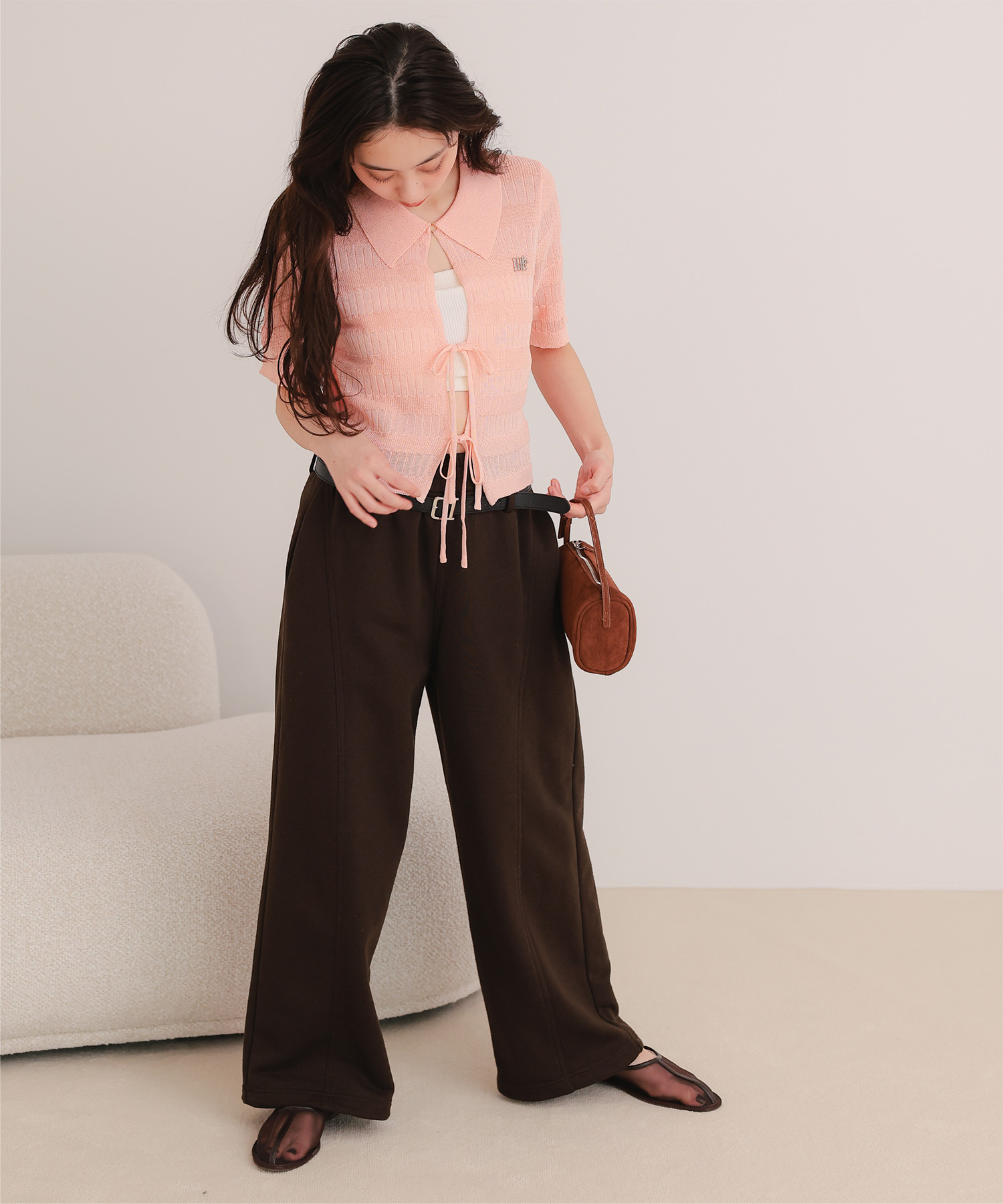 フロントリボンシアーニットトップス