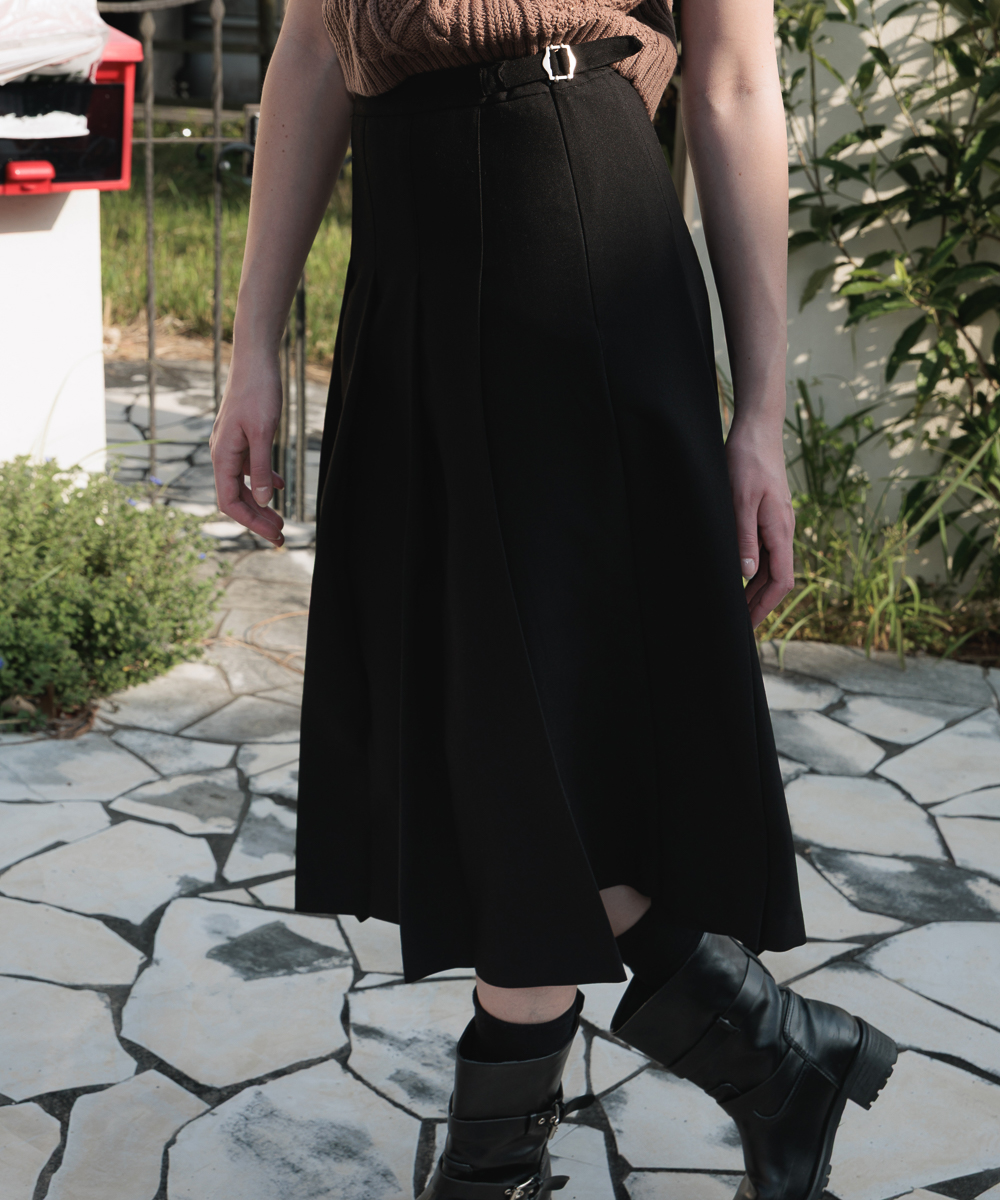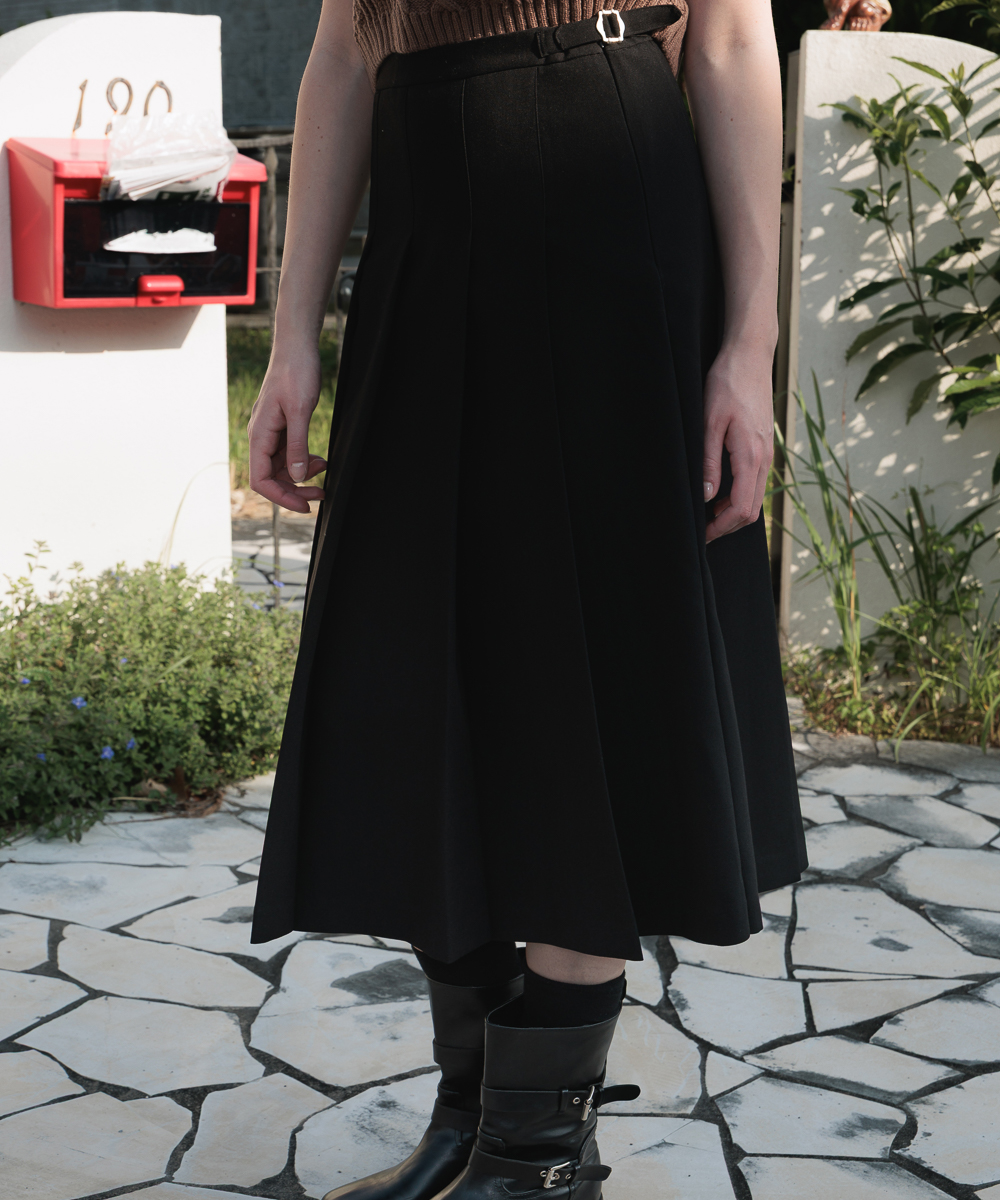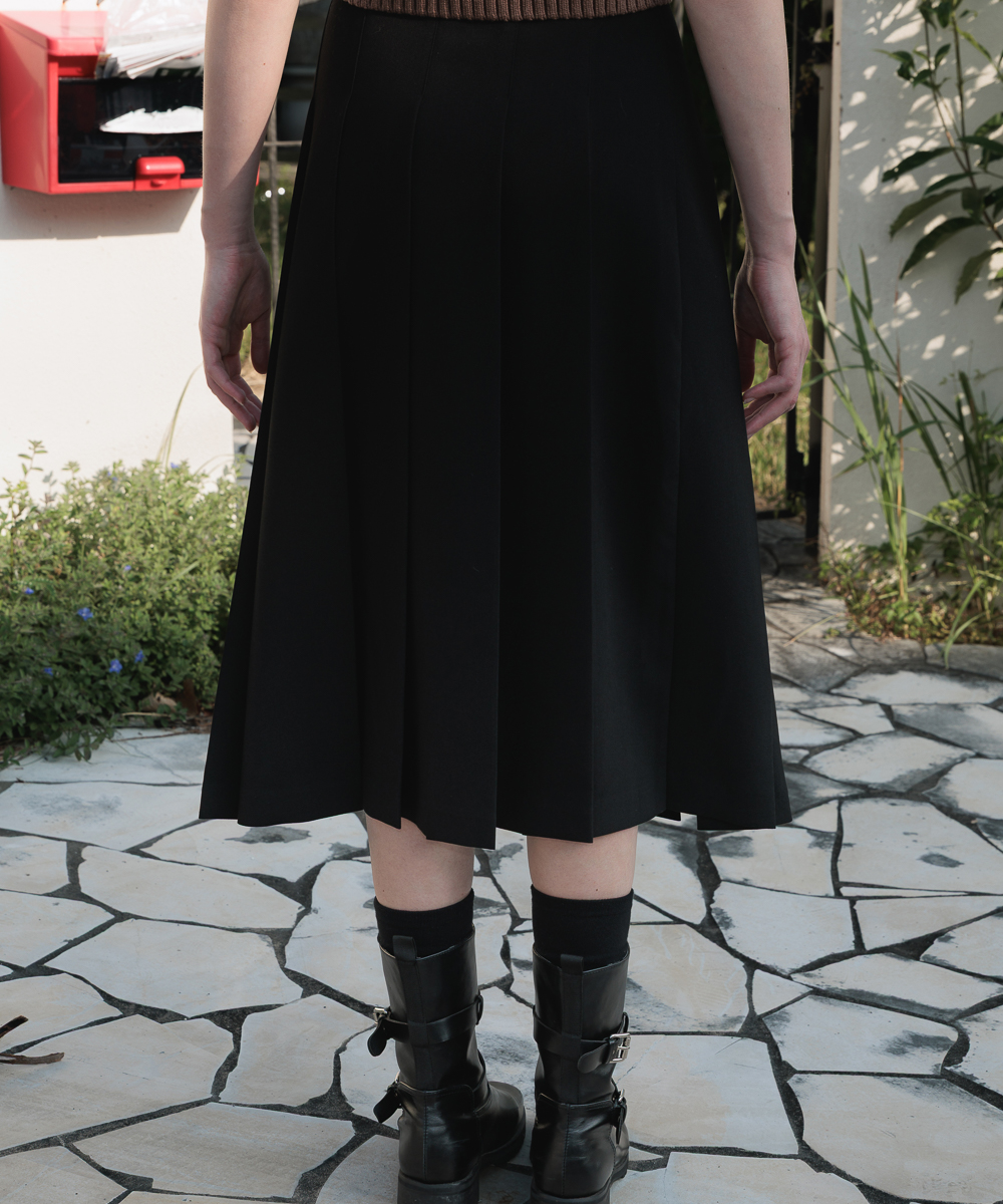すっきりとしたシルエットが際立つロング丈のプリーツスカートです。