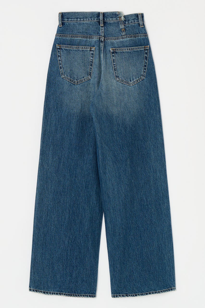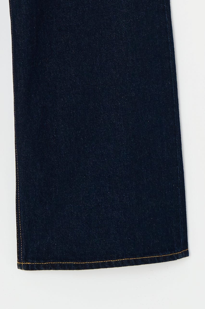 フィットした腰回りから、裾にかけて広がるワイドストレートシルエットは脚長効果抜群。少しボーイッシュな雰囲気があるのもこのデニムの醍醐味です。