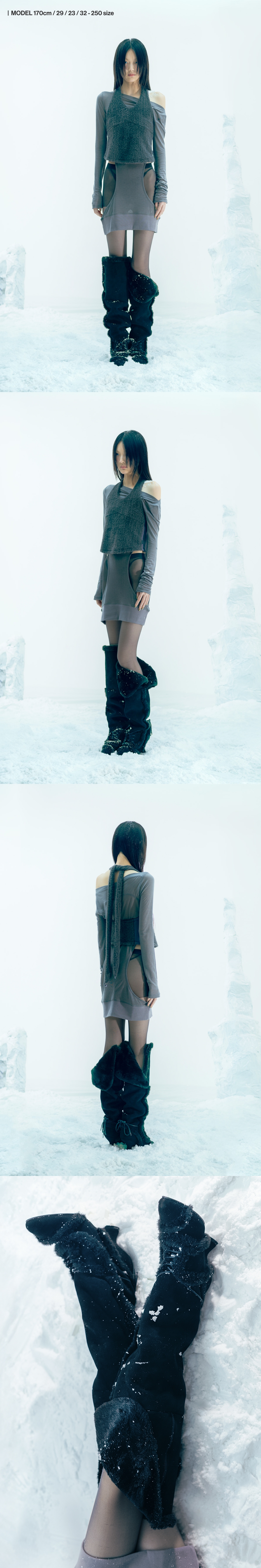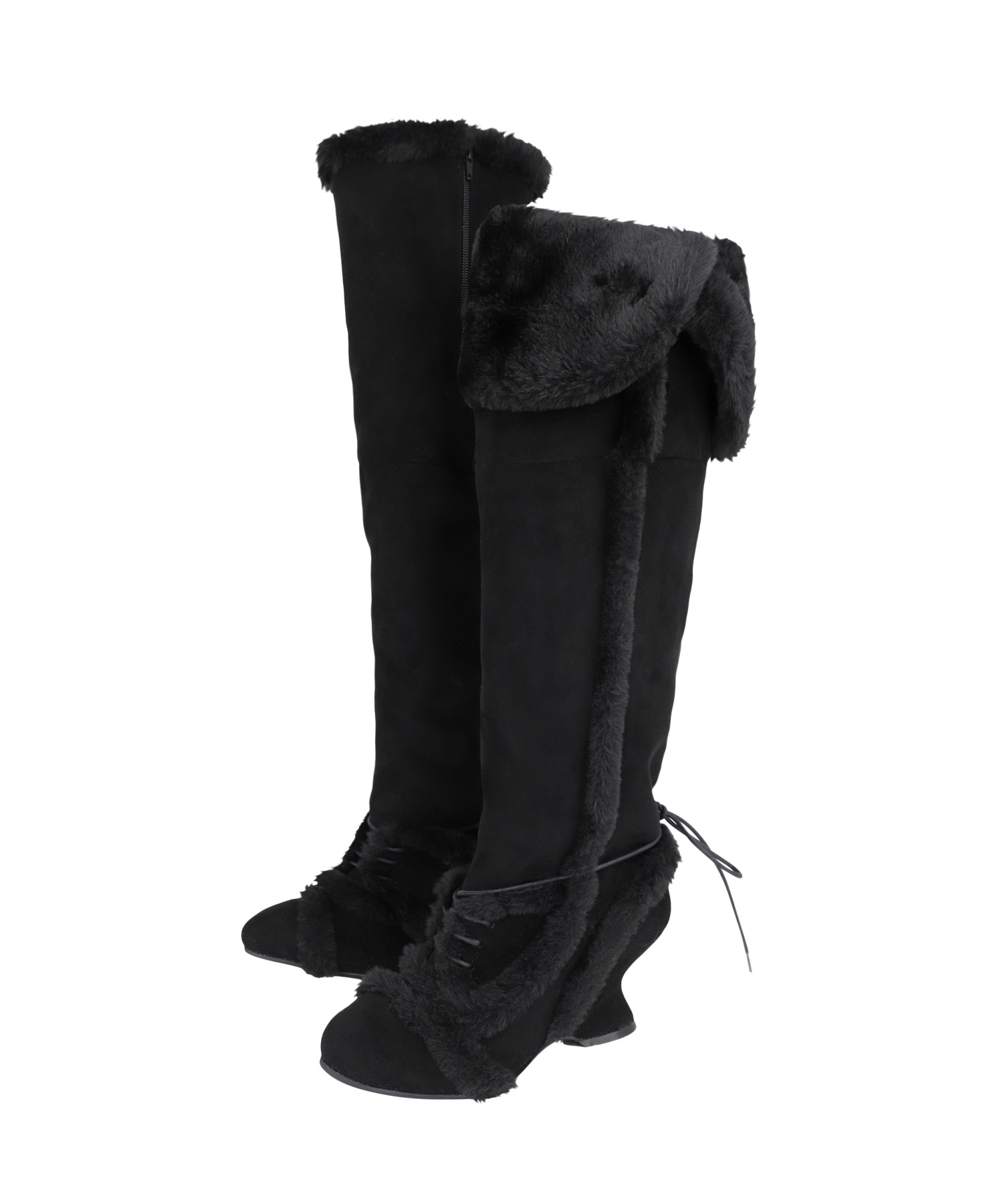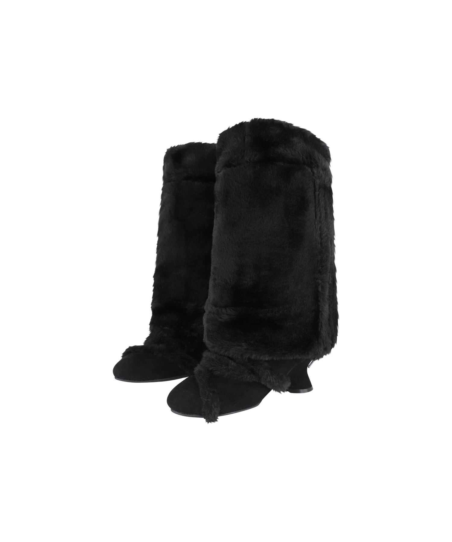 フォールディングが可能な構築的シルエットのフェイクファーロングブーツ