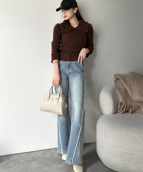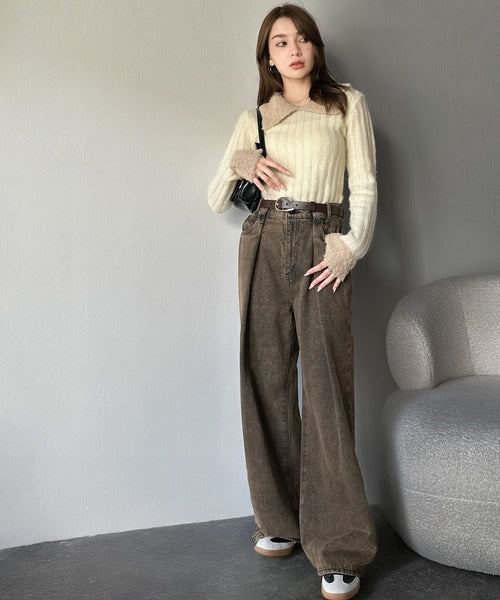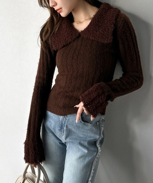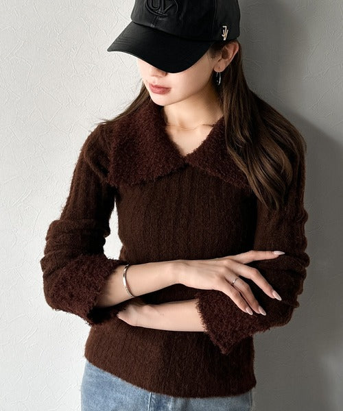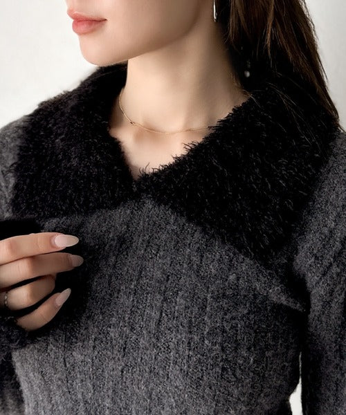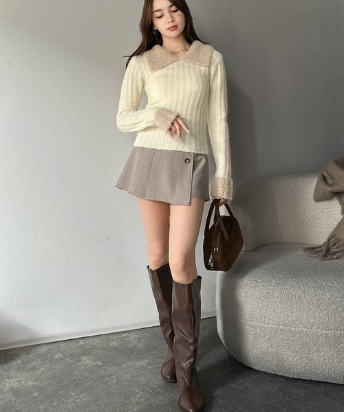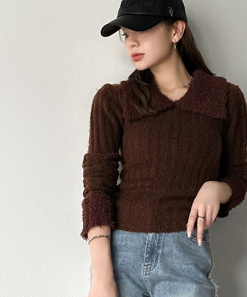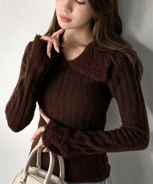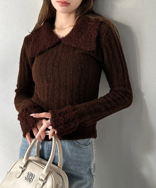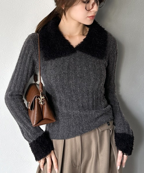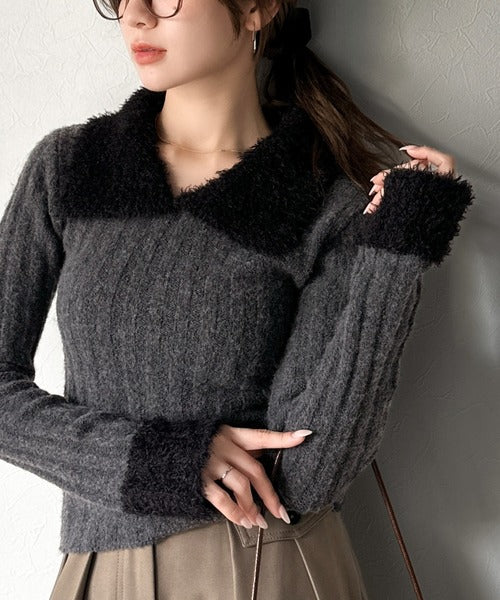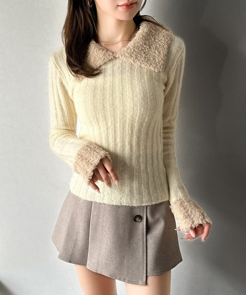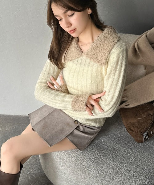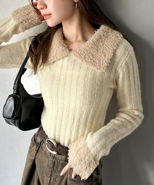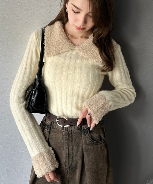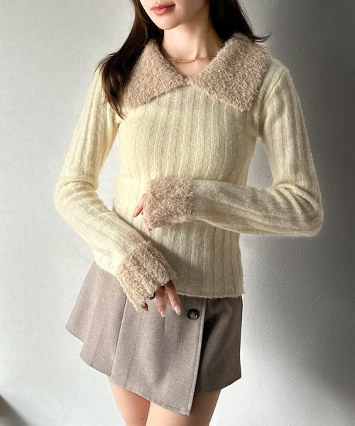 【mily bilet】可愛さ、ふわり2倍増し◎配色ファー衿リブニットプルオーバー(長袖) mi1029145