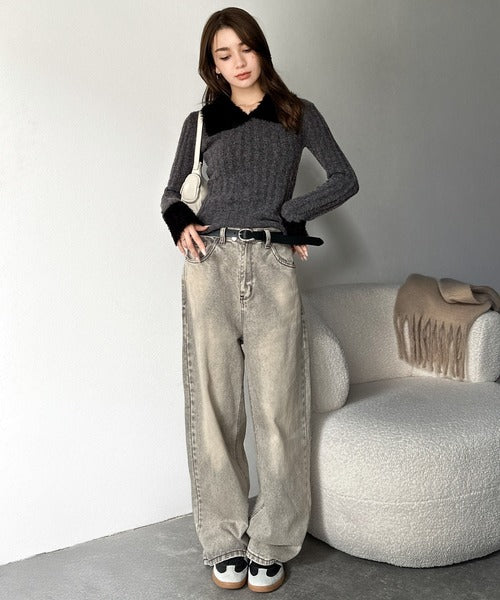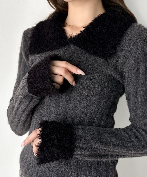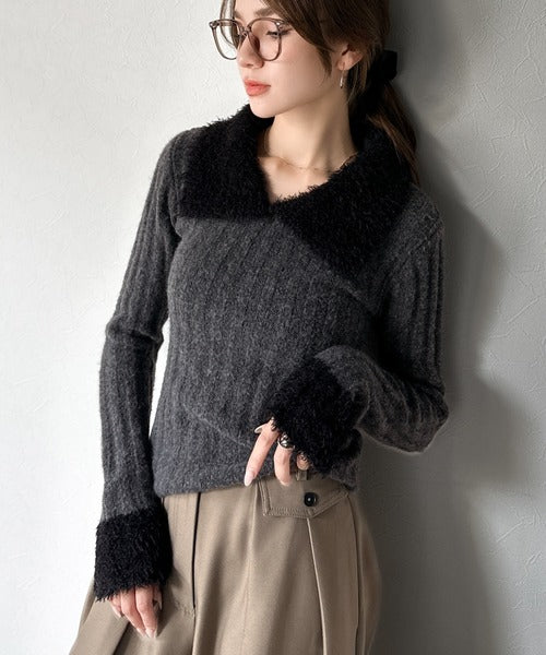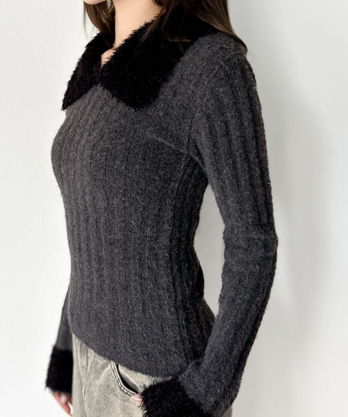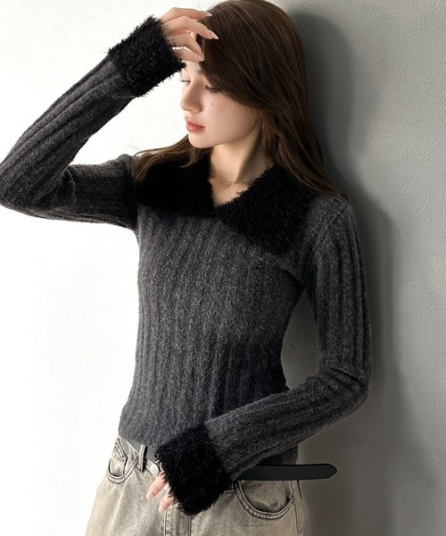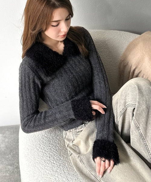 ・異素材mix(柔らかいファー素材×リブニット)