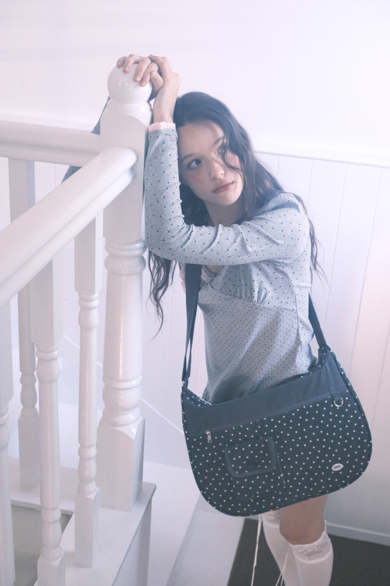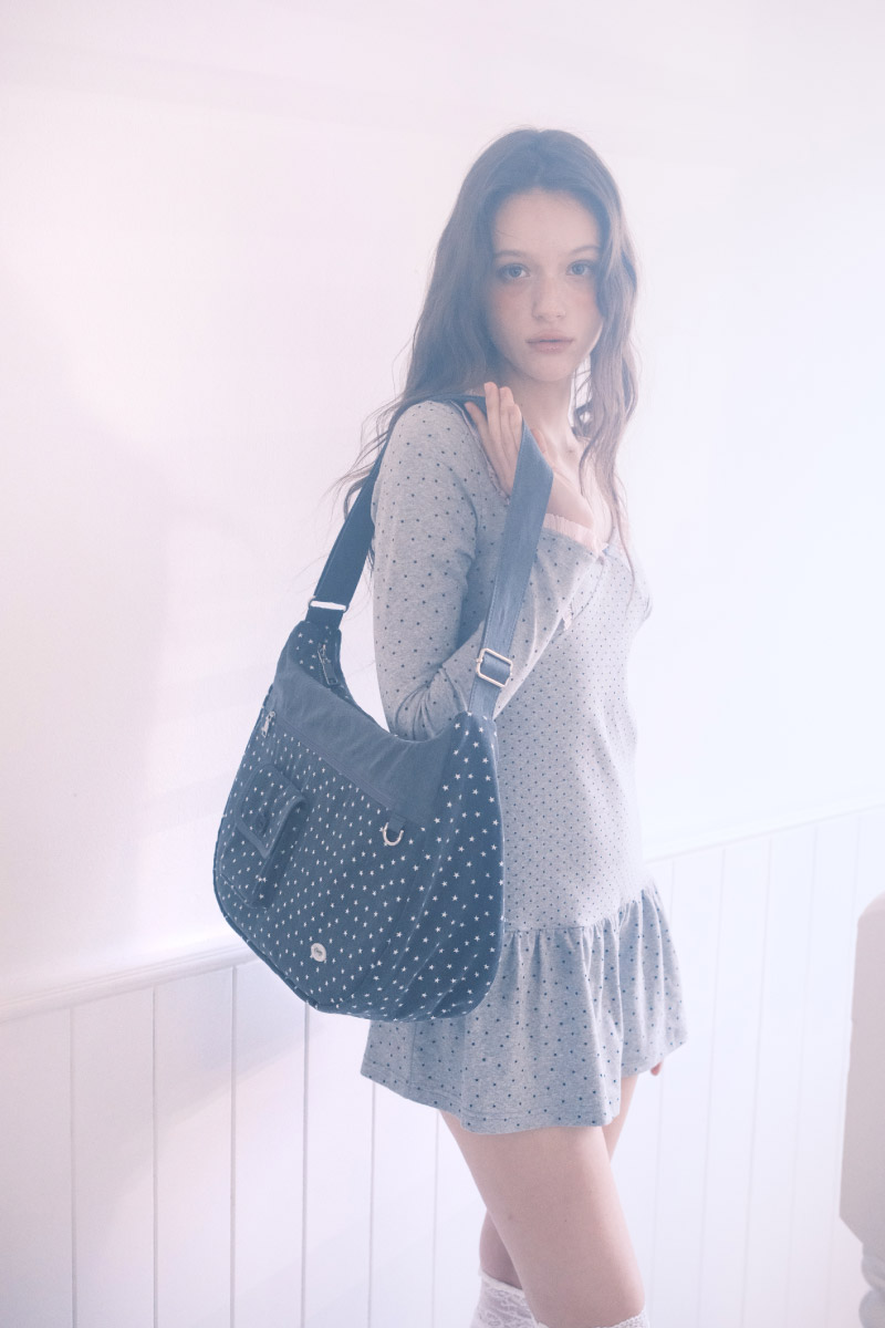 小さな星柄をあしらった、どこへでも快適に持ち歩けるcozing(コージング)のメッセンジャーバッグです。