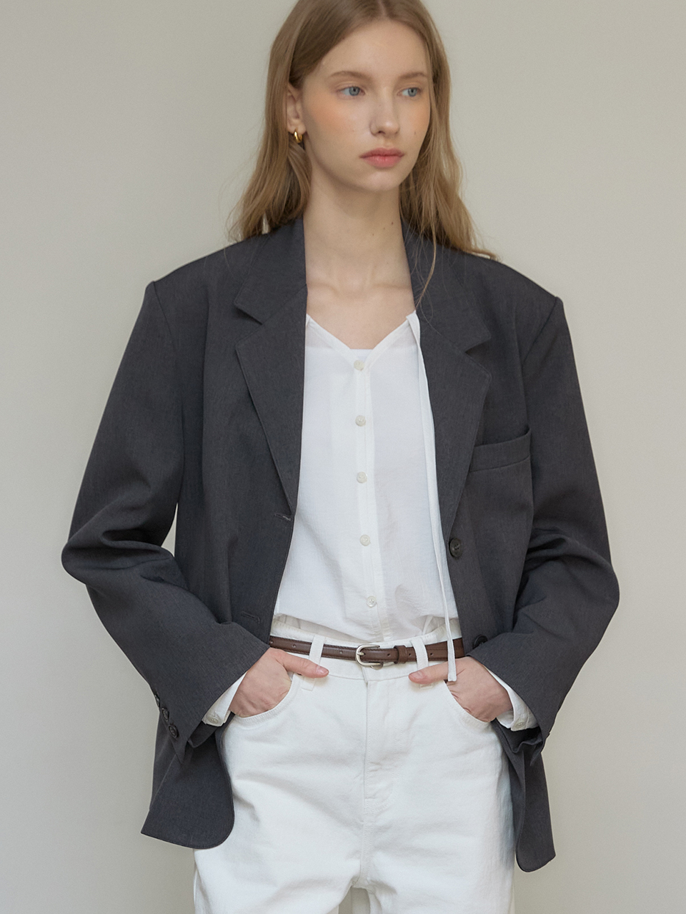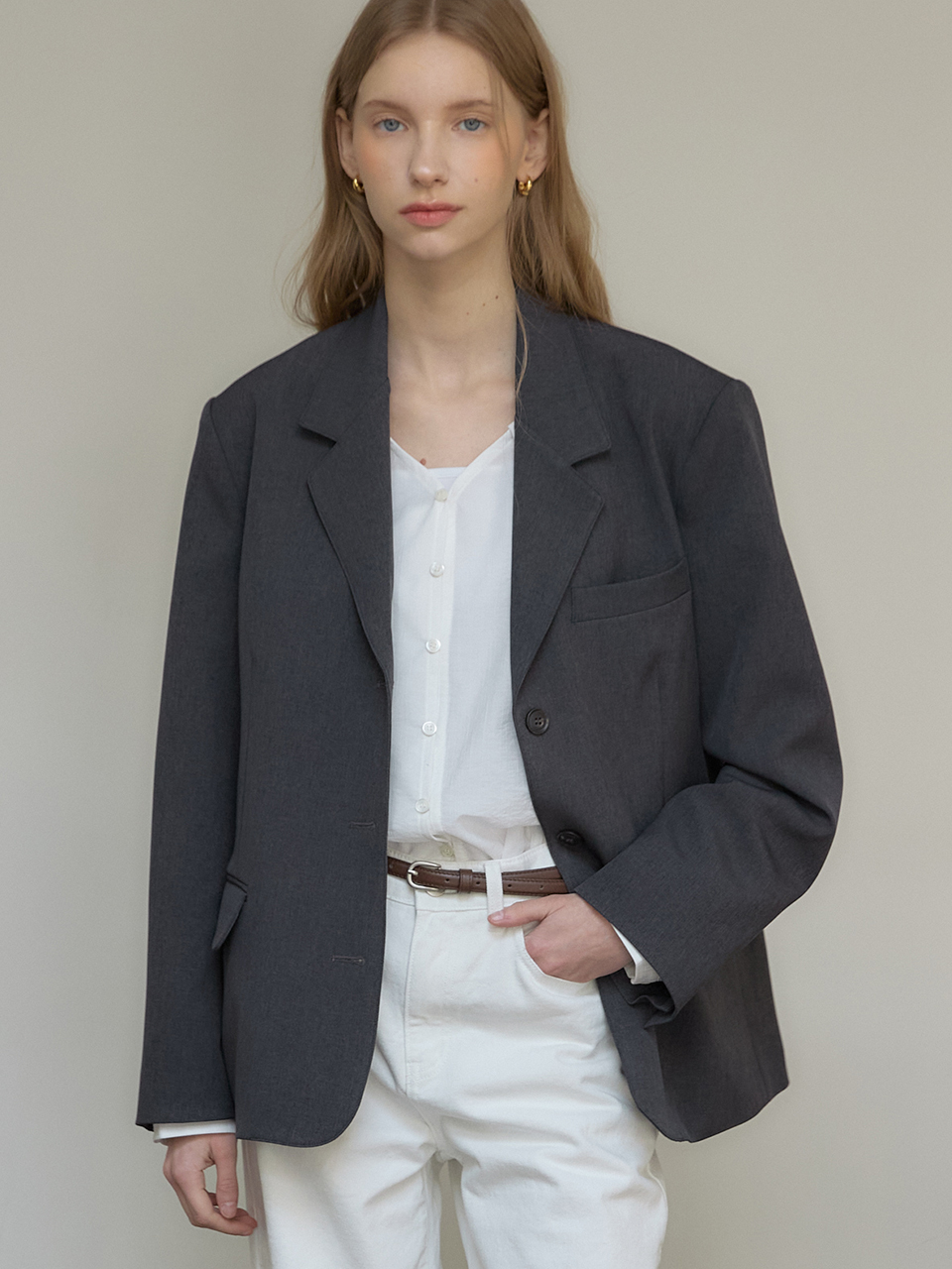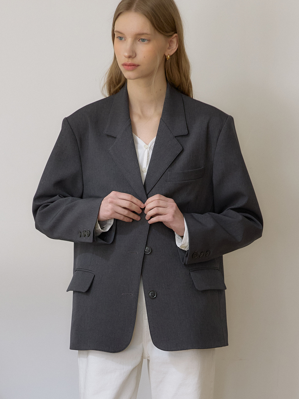 Signature Single Button Jacket - Charcoal