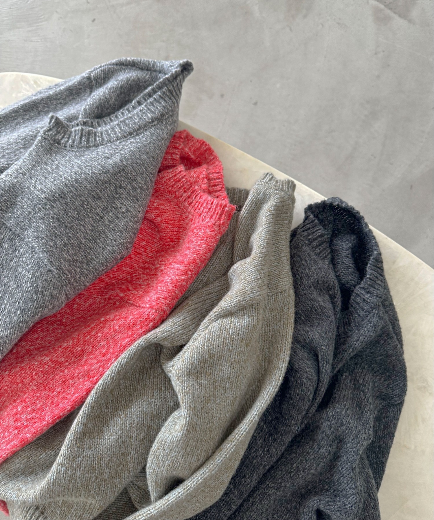 どのカラーもメランジの深みのある色合いでシンプルなデザインながらもお洒落な印象に◎