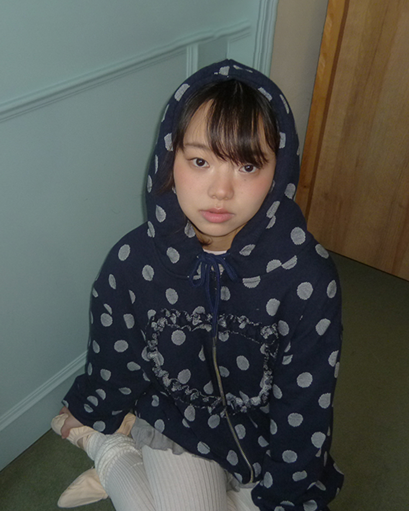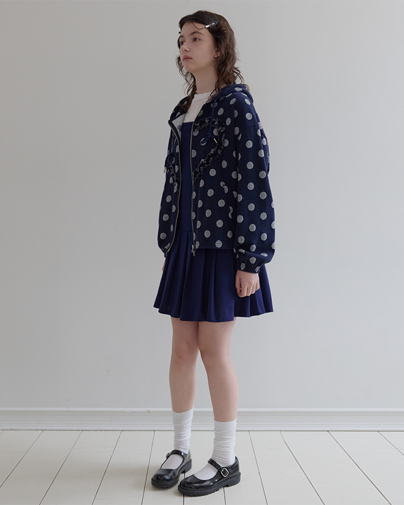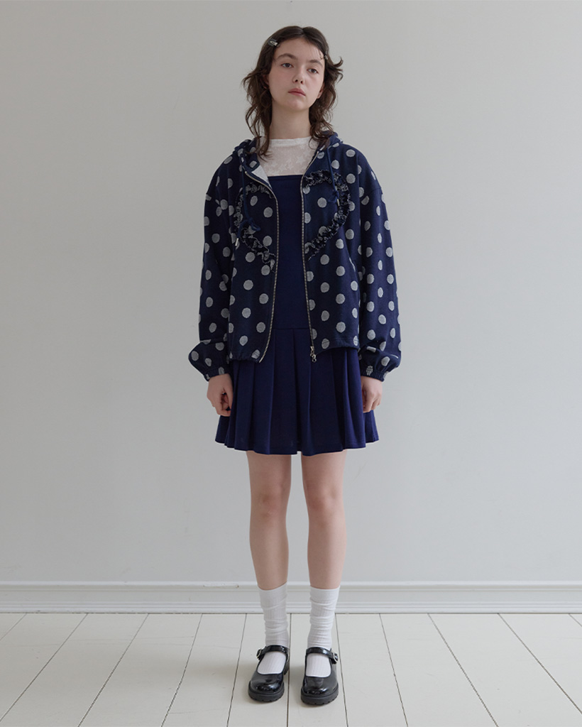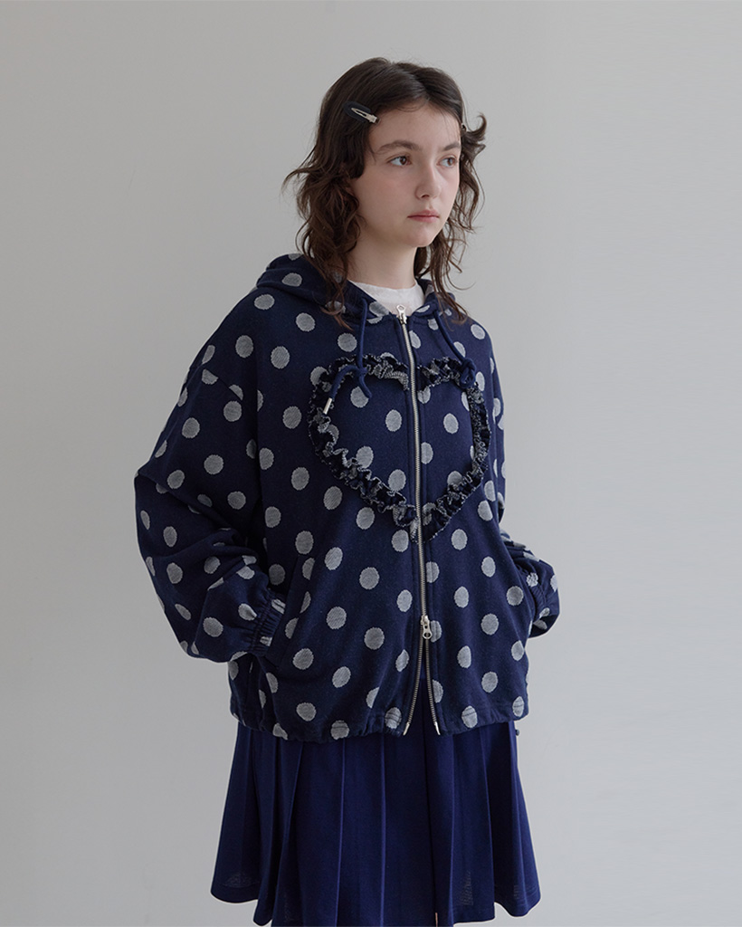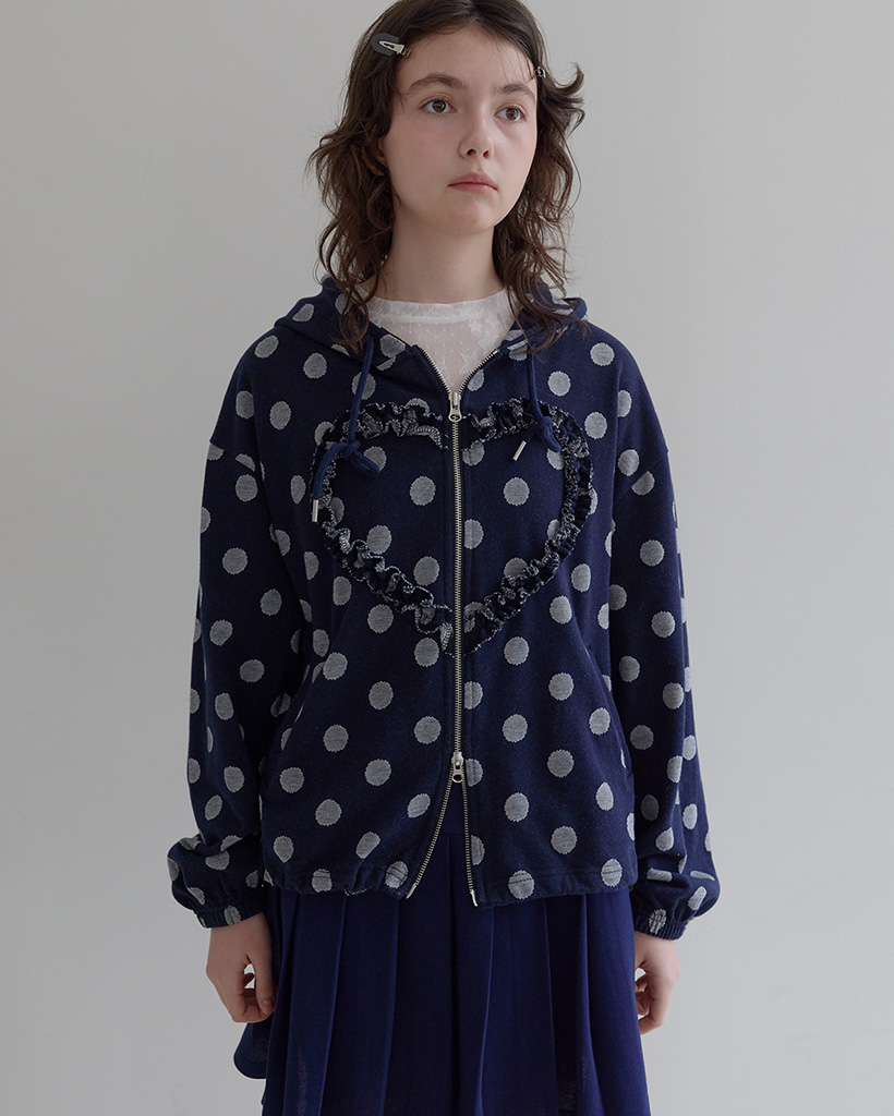 [K-POPアイドル着用] Frill Heart Hoodie, Dot Navy