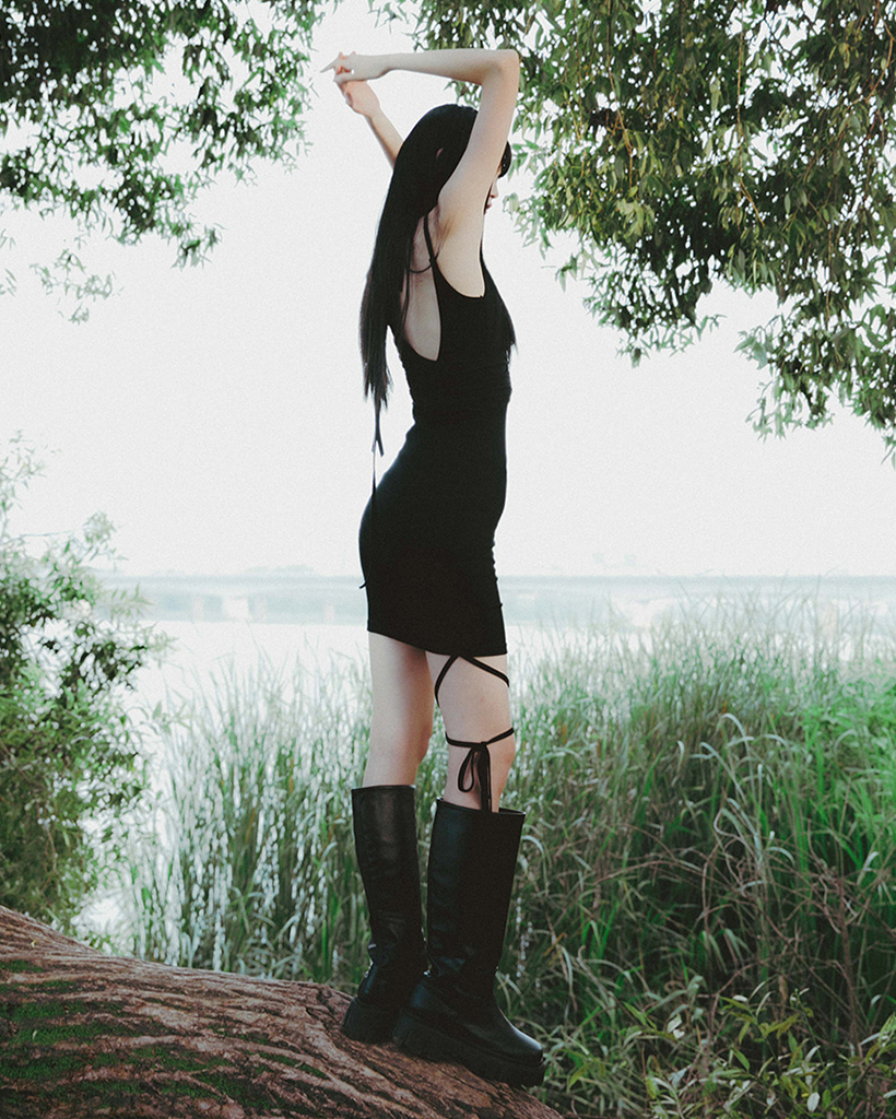 [SET] Layered Handmade Twisted Dress (FL-133_Black)