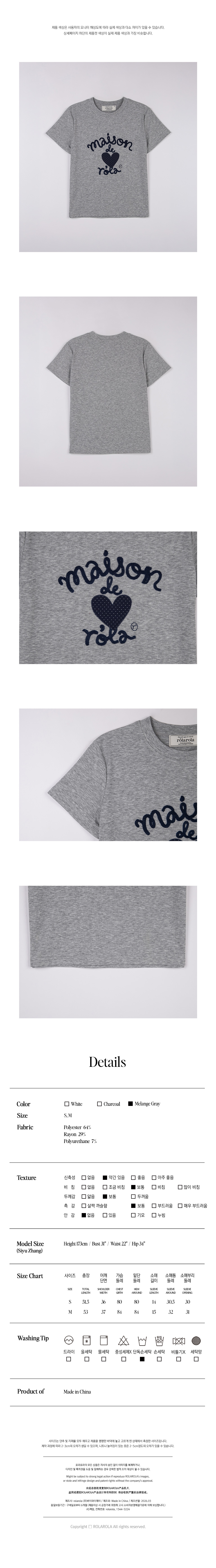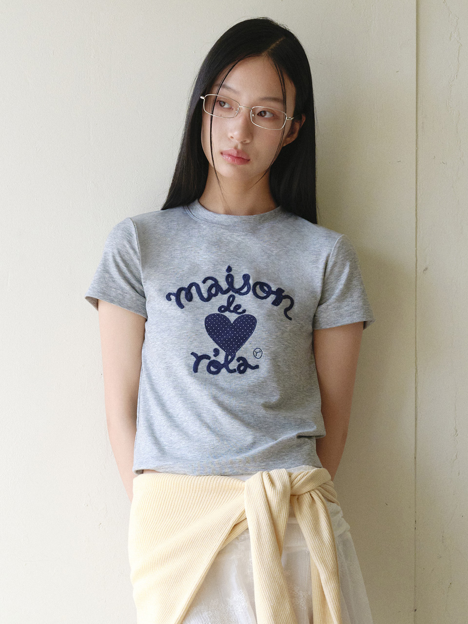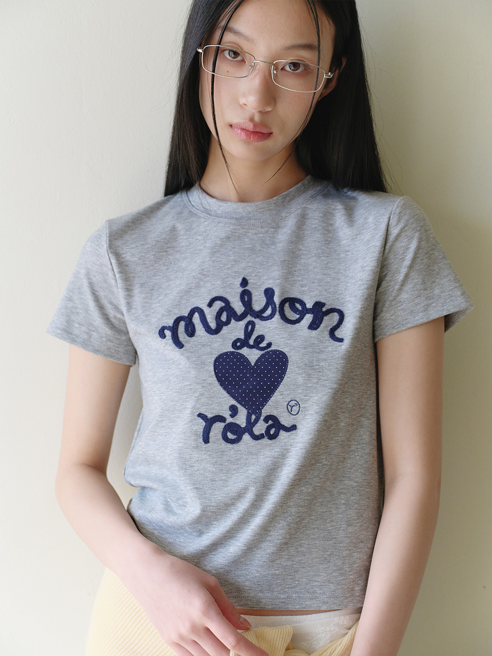 MAISON DE ROLA EMBROIDERY HEART T-SHIRT M/GRAY