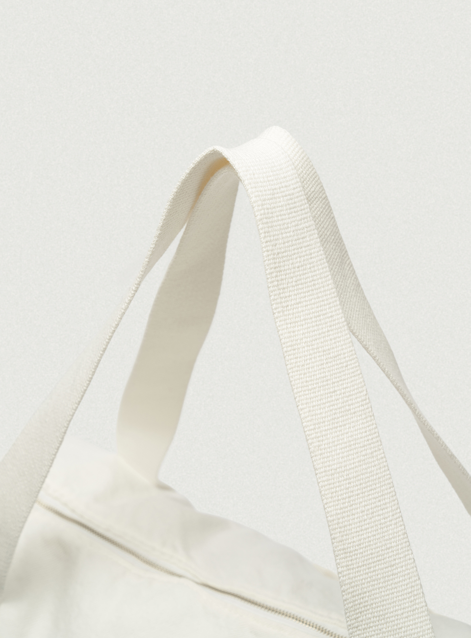 ホワイトで、しっかりと高密度なツイルのコットン素材