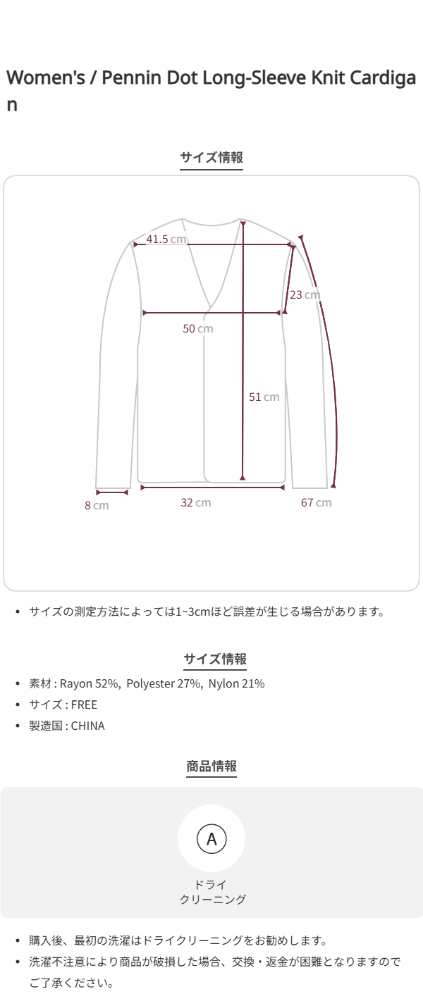 ドット長袖ニットカーディガン