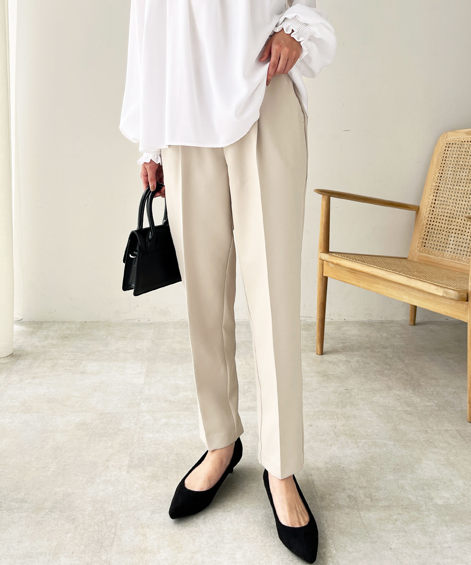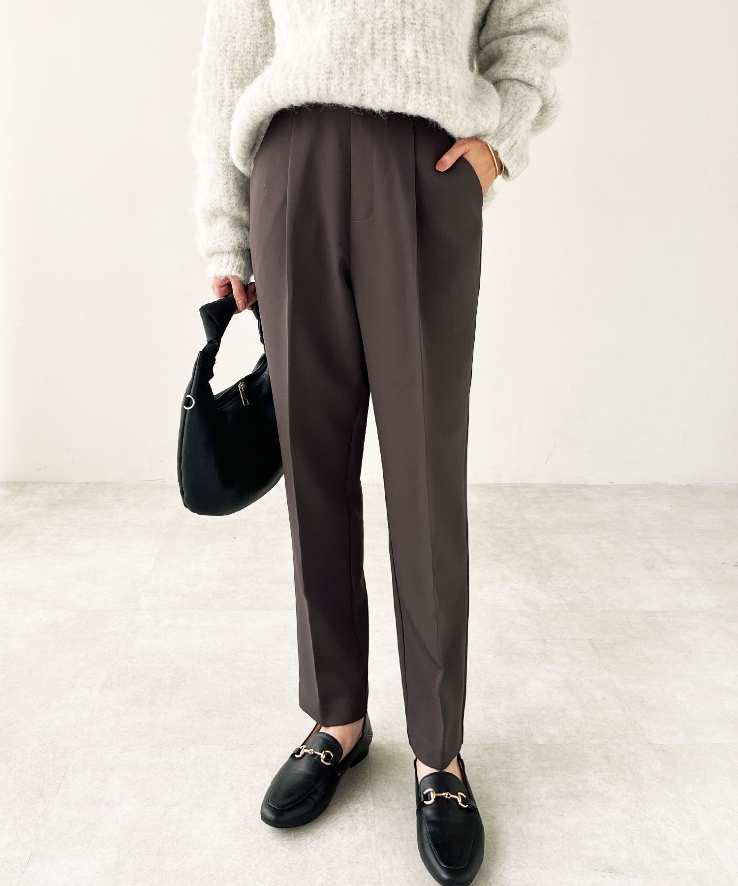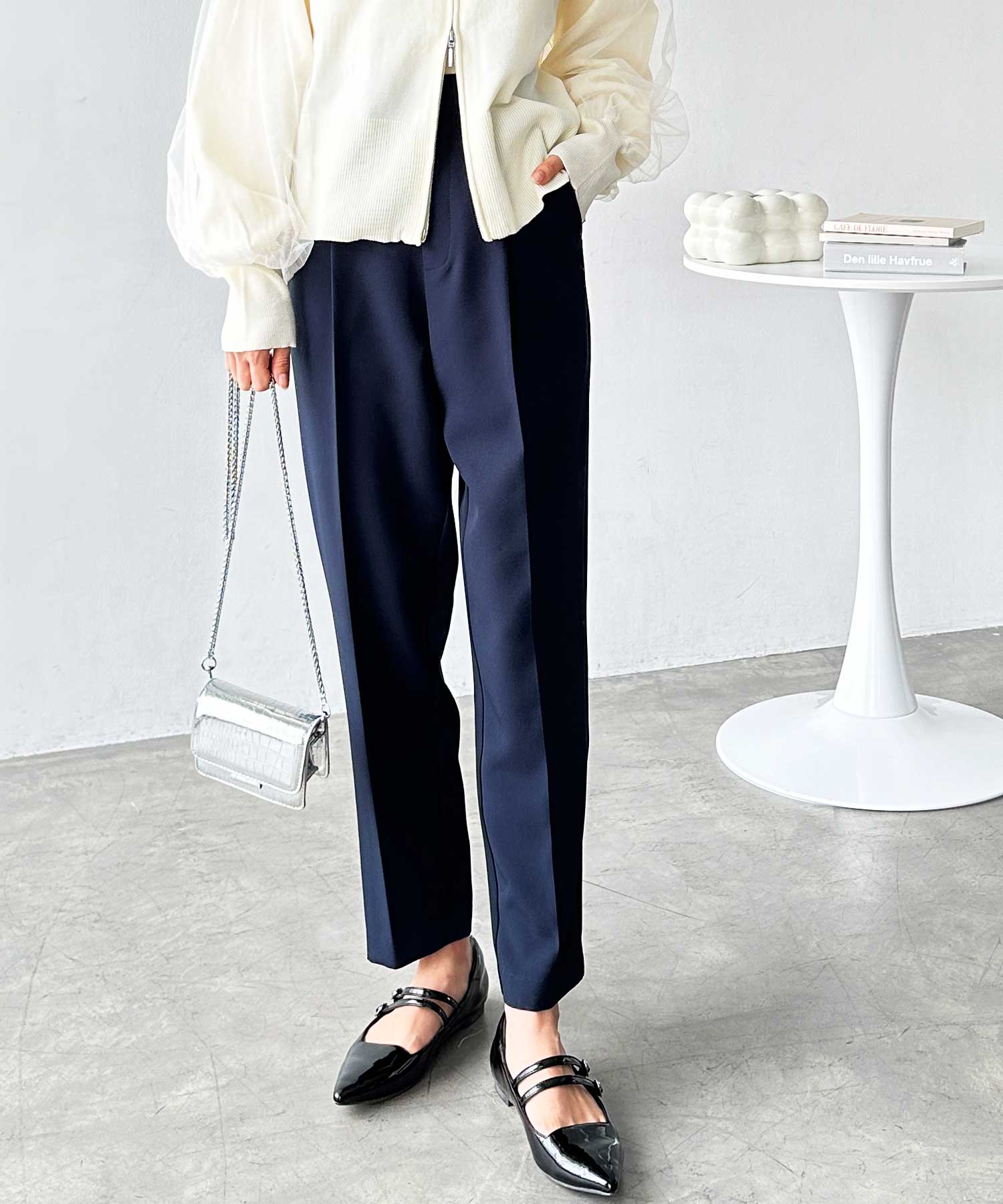 春 コーデにぴったり。美脚きれい魅せ!センタープレステーパードパンツ