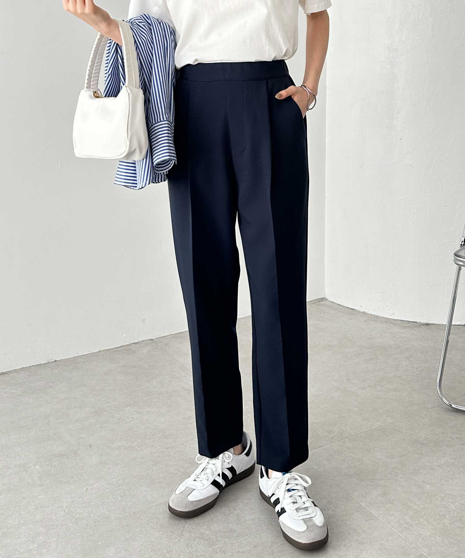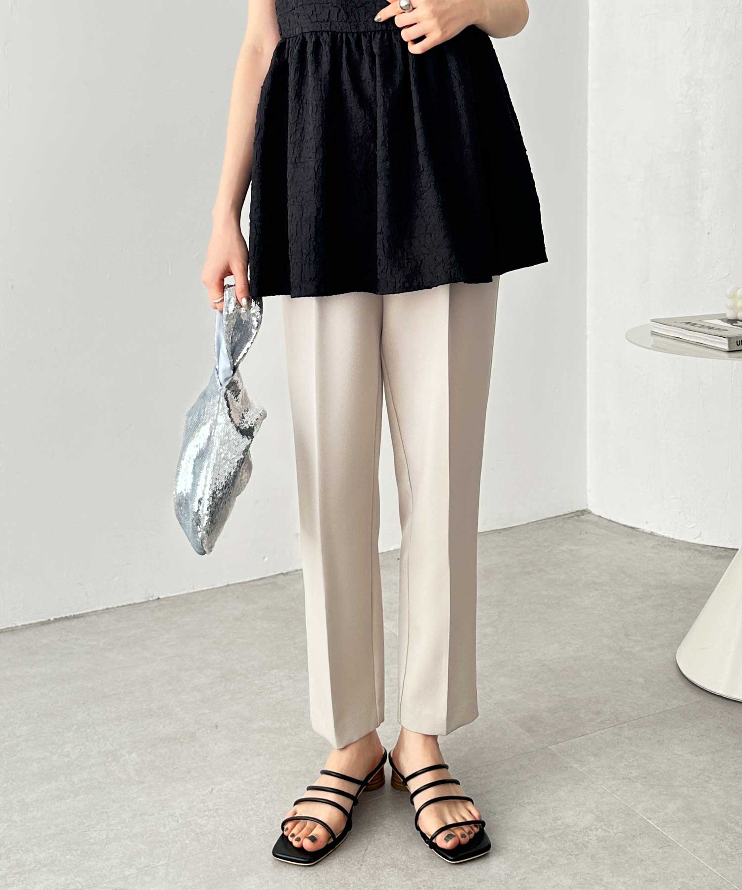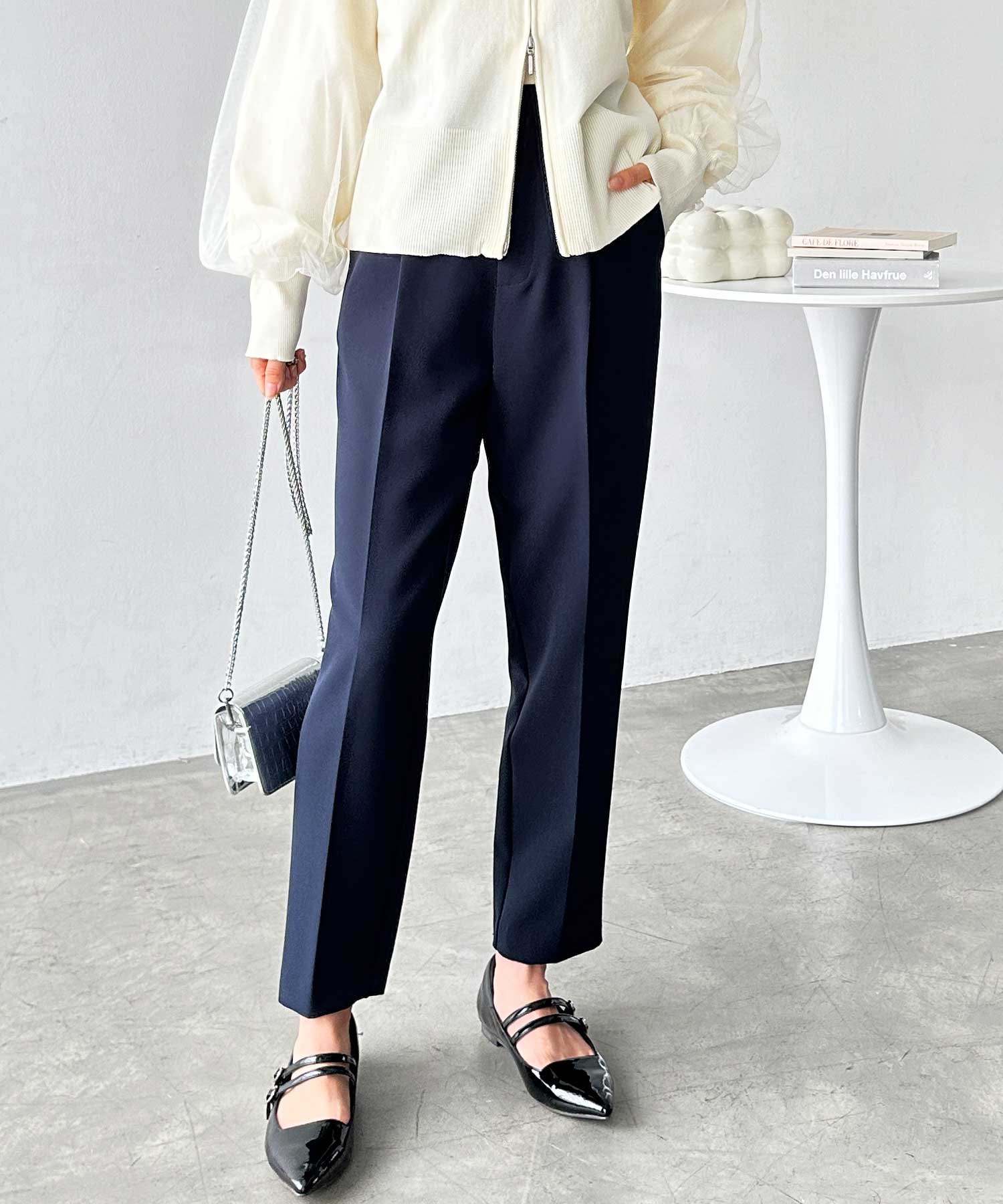 春 コーデにぴったり。美脚きれい魅せ!センタープレステーパードパンツ