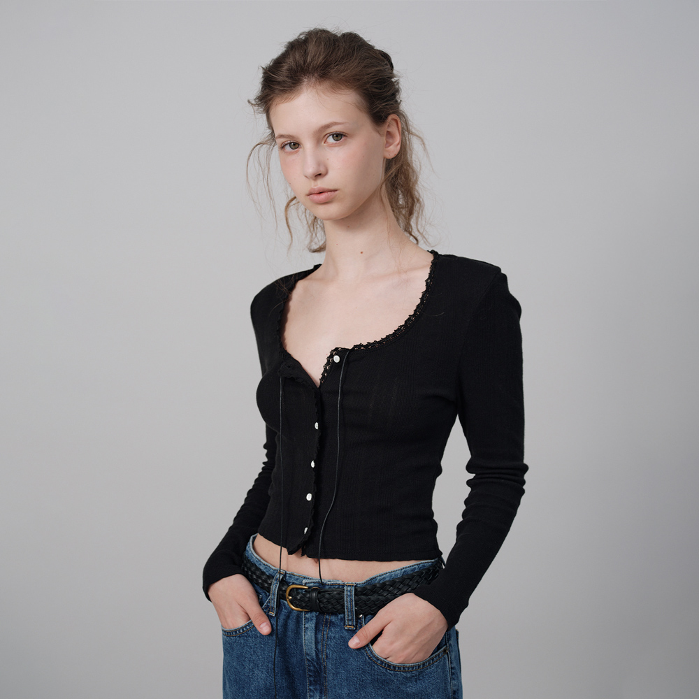 Ravioli Lace-Trim Button-Up Top - Black