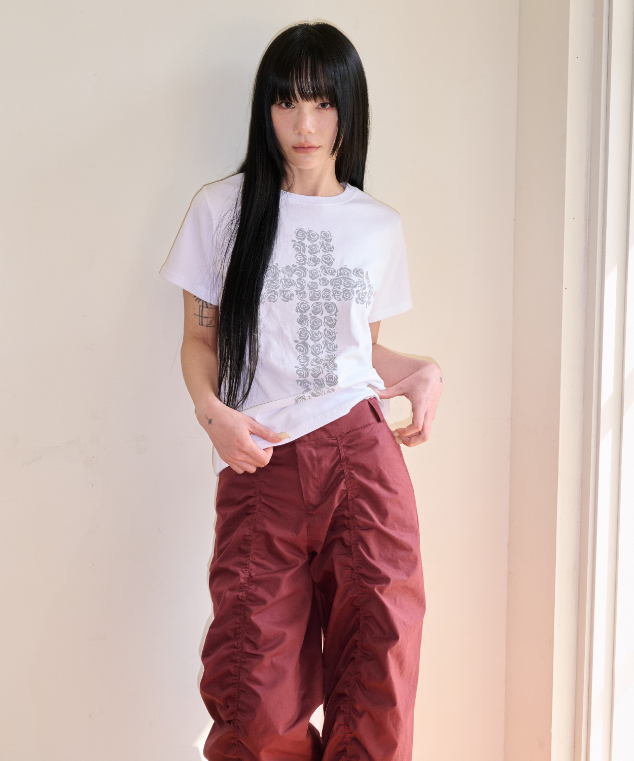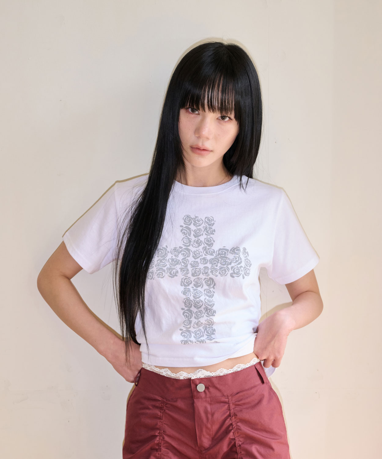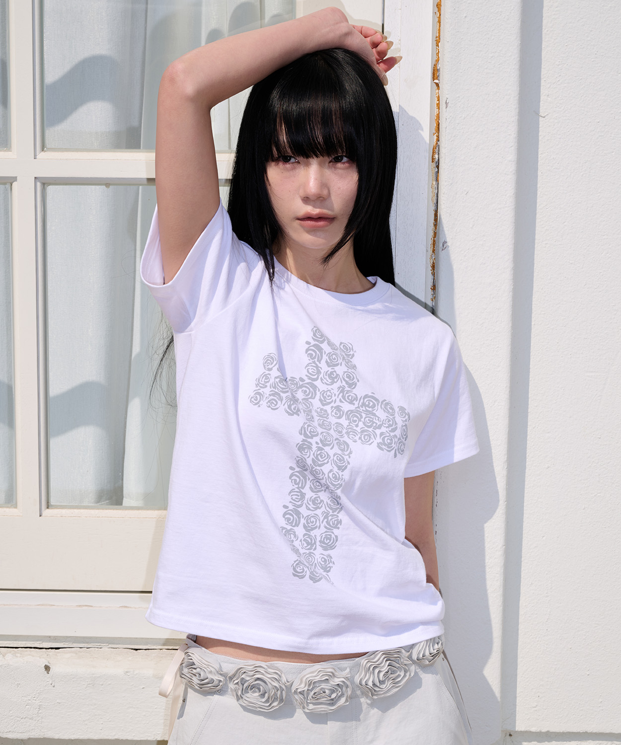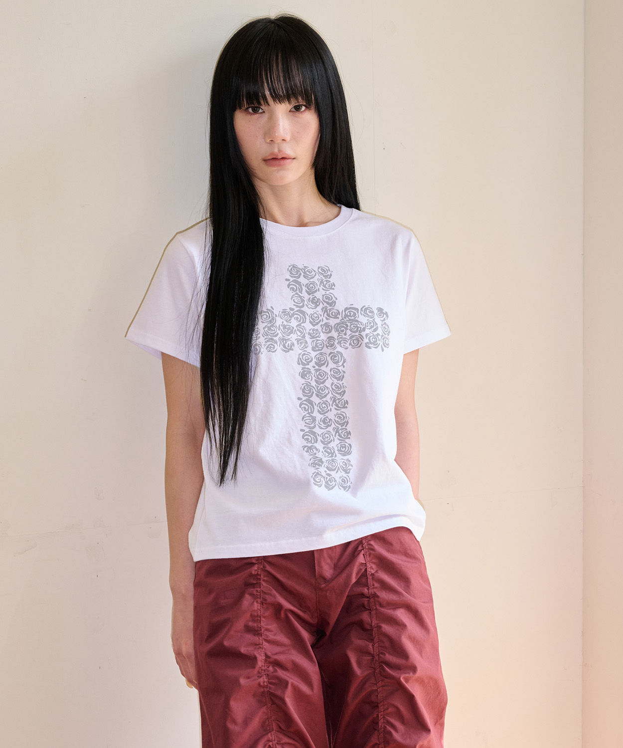 FLOWER CROSS SLIM T SHIRT - WHITE