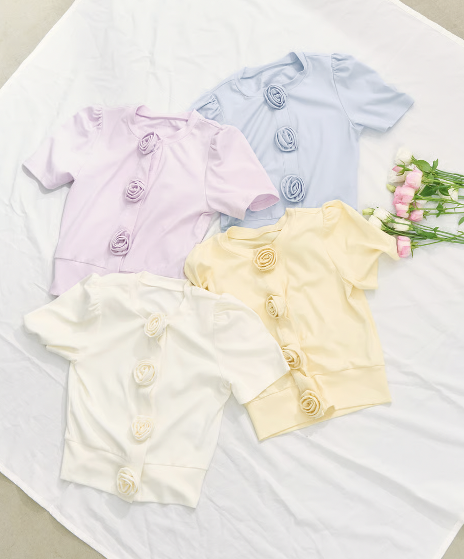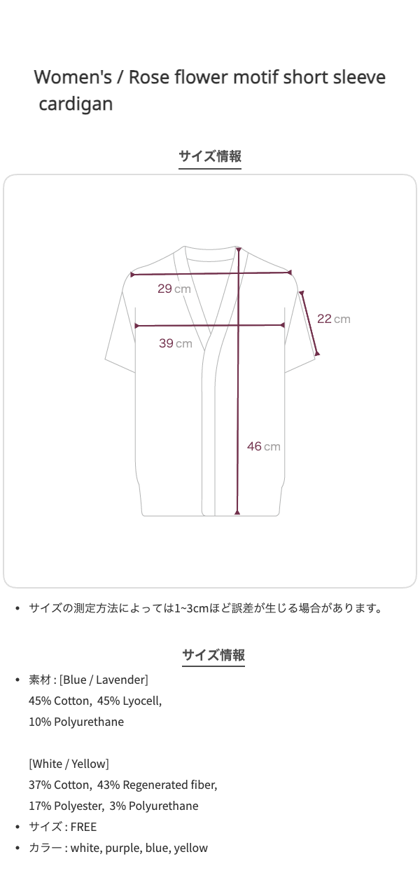 大好評のRose flower motif cardiganに、夏仕様の半袖バージョンが登場♡