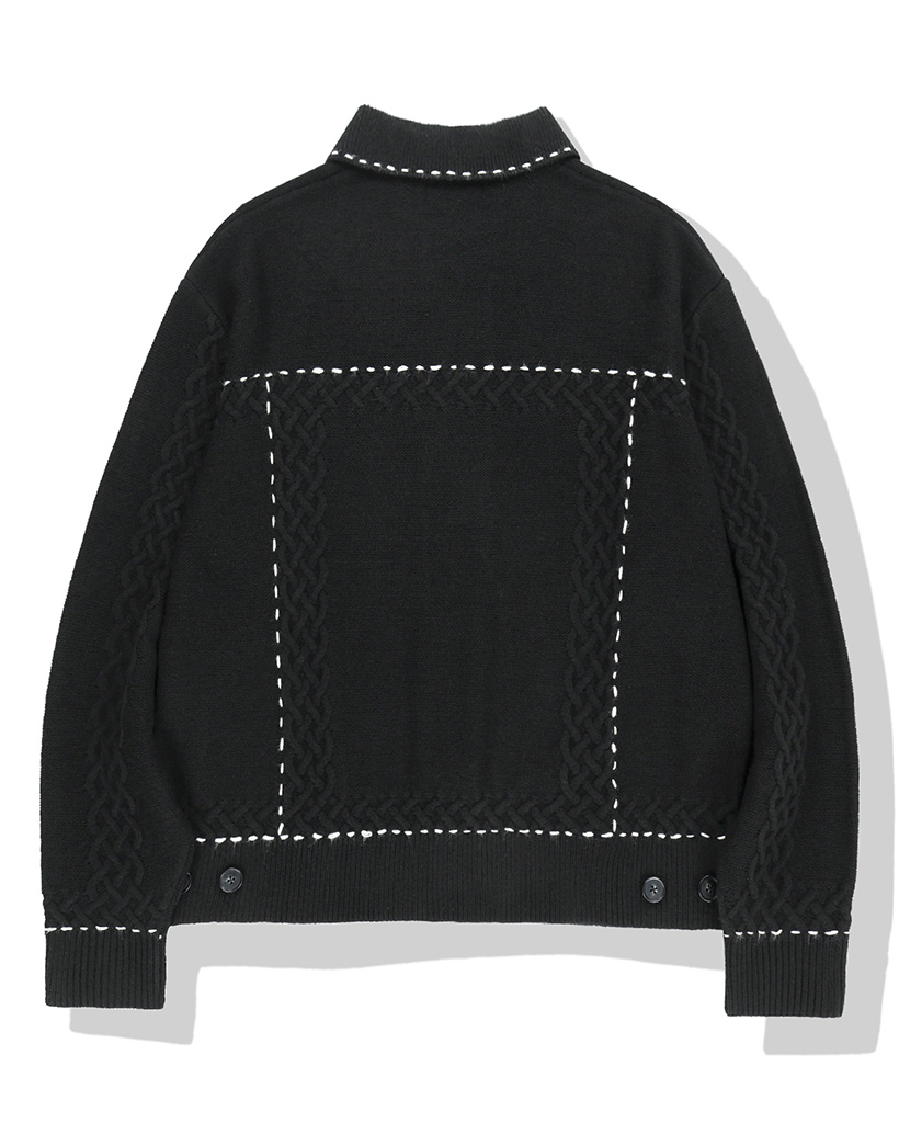 [nugu限定商品] Contrast Stitch Knit Trucker Jacket - Black