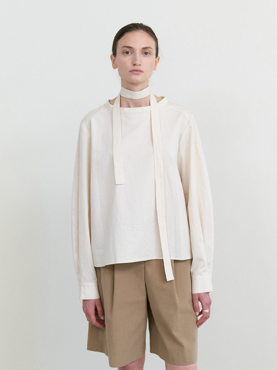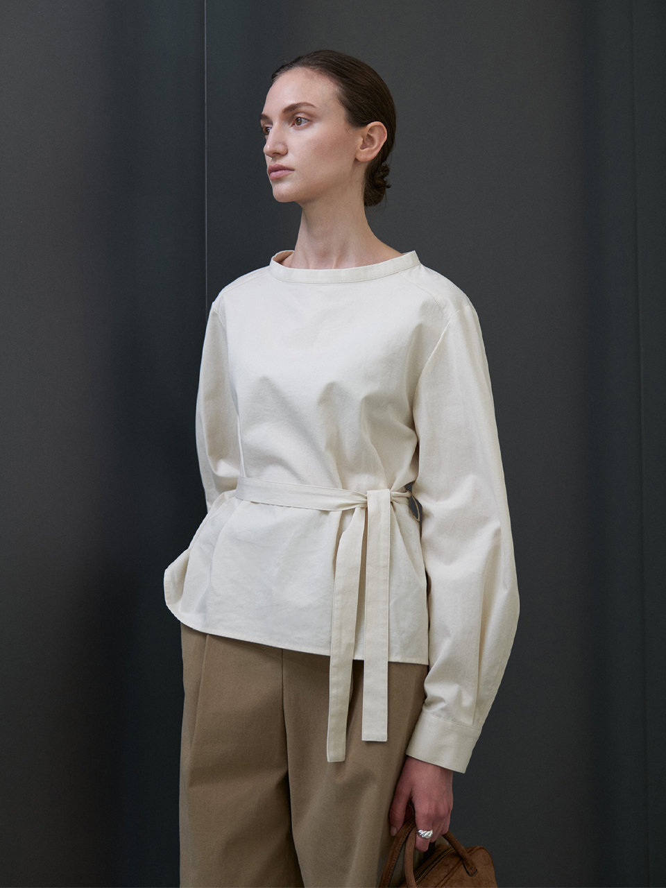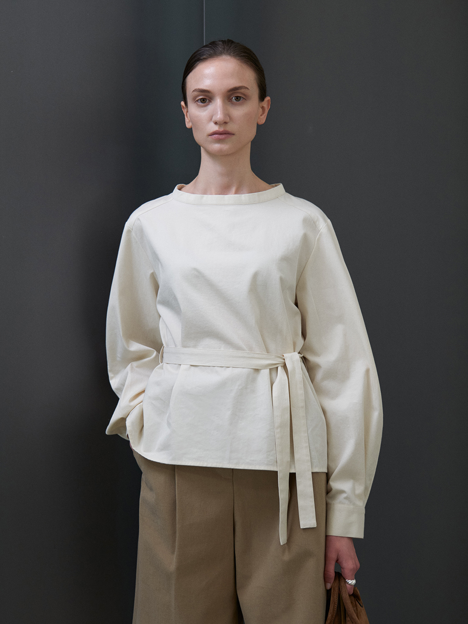 Balloon sleeves belt blouse_IVORY