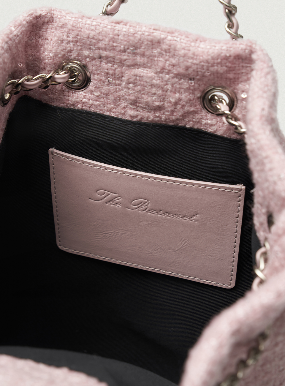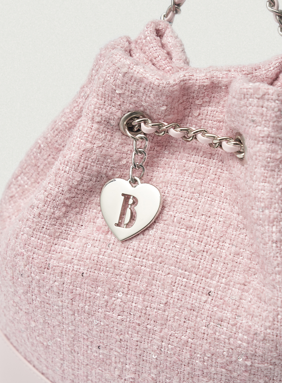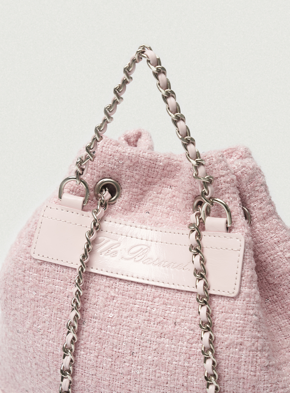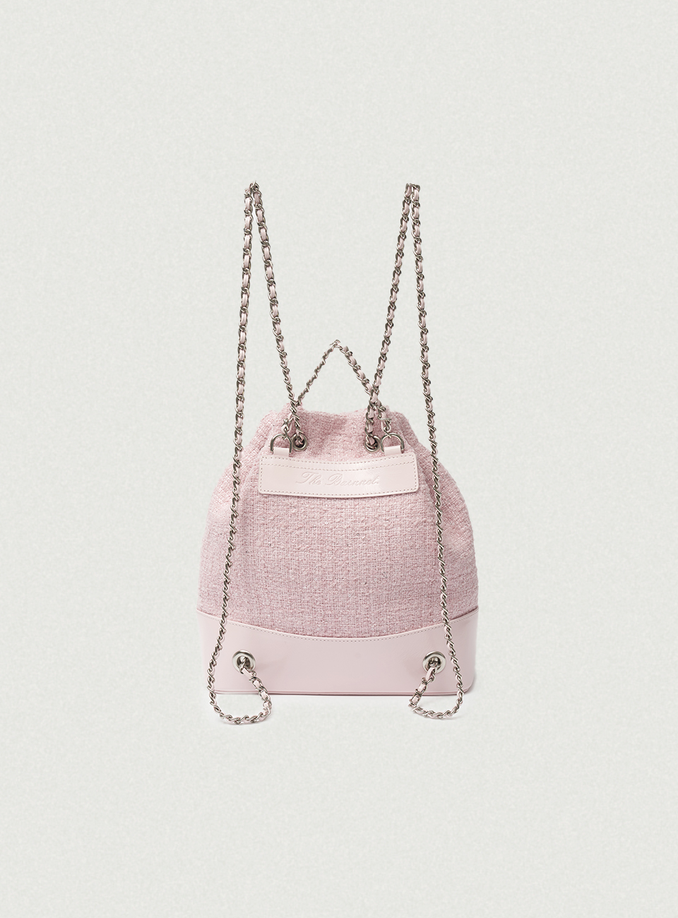 Tweed Drawstring Chain Backpack_Pink