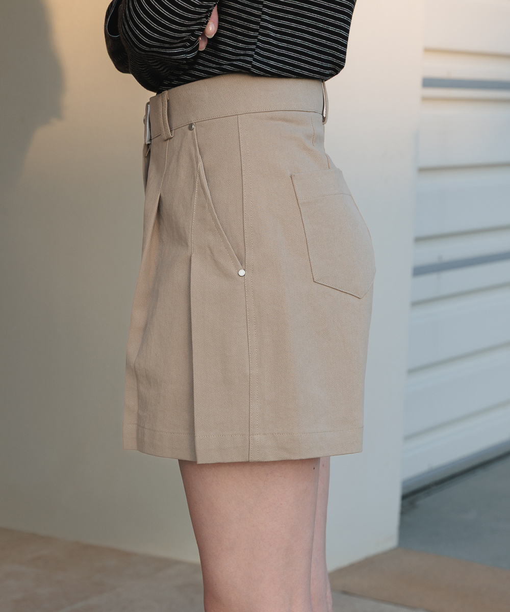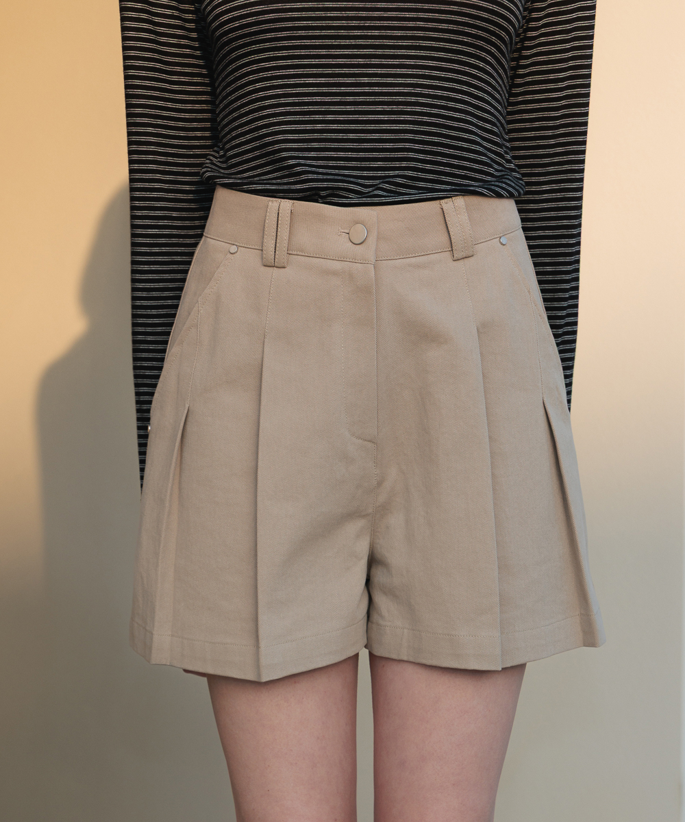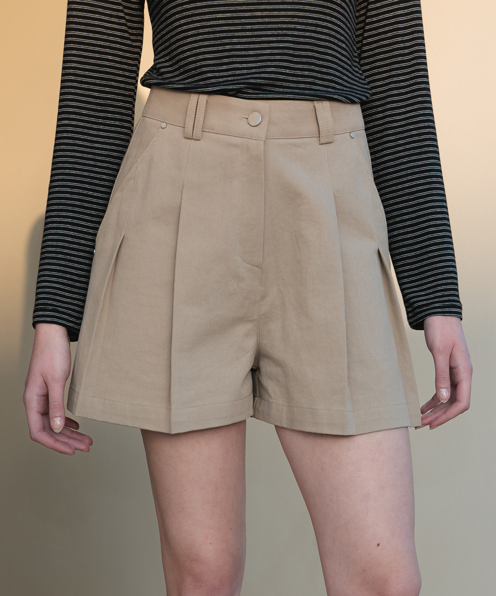 クラシックな雰囲気が感じられるツータックポイントショーツです。