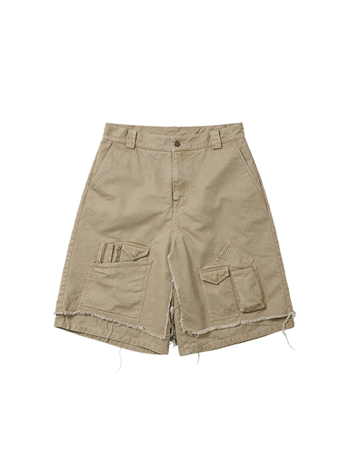Washed Layered Cargo Skirt Shorts [BEIGE]