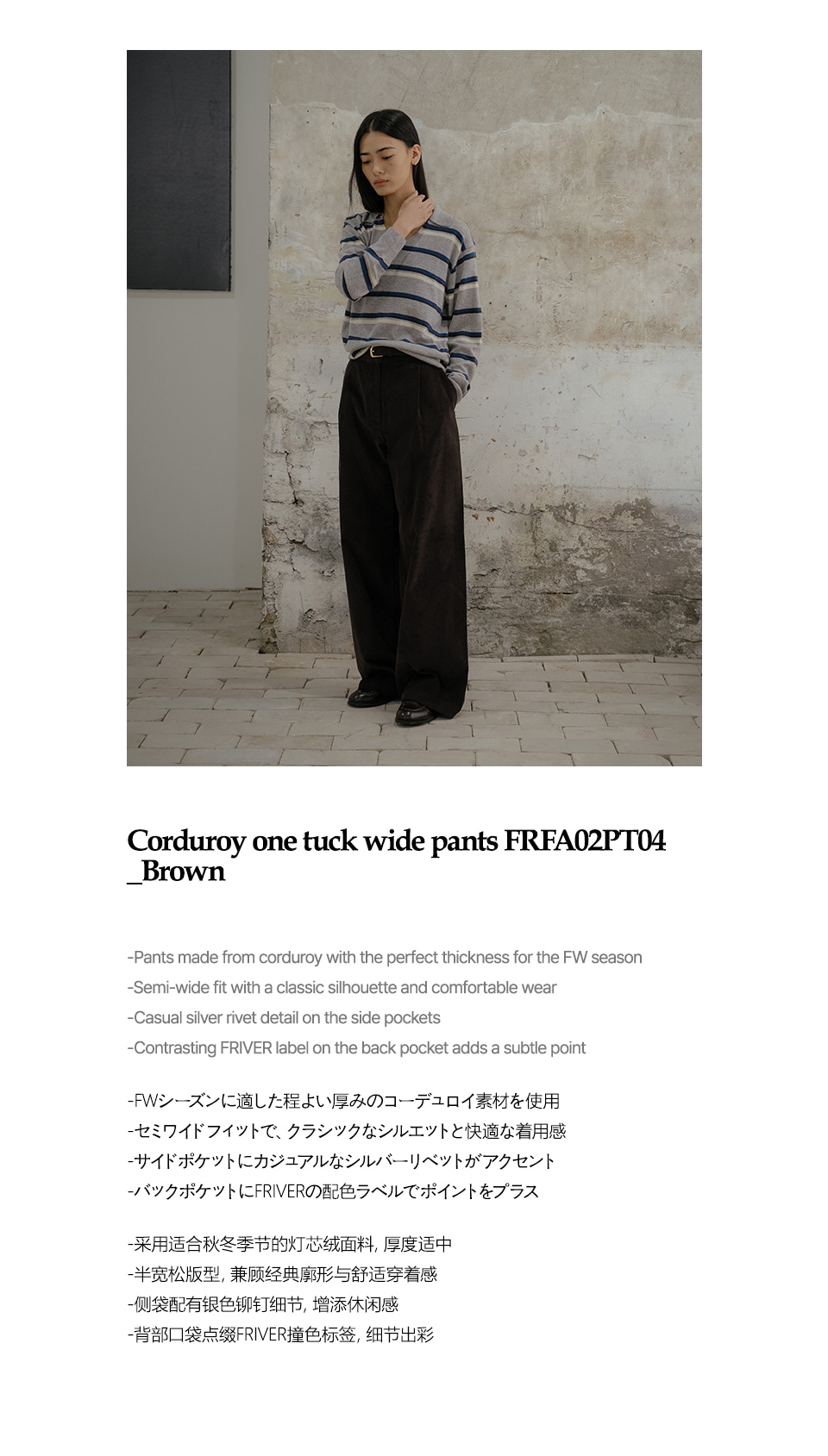 Corduroy one tuck wide pants FRFA02PT04_Brown