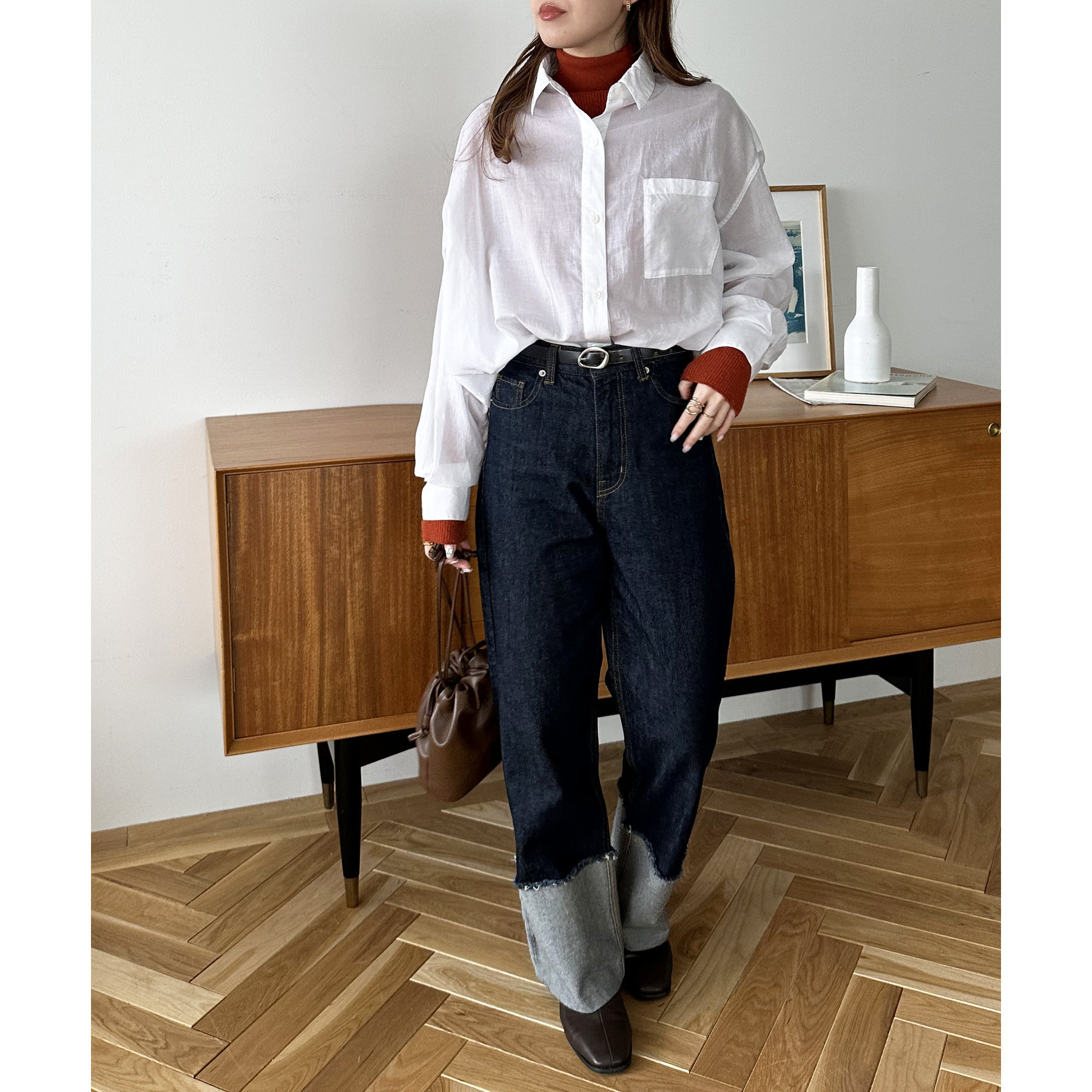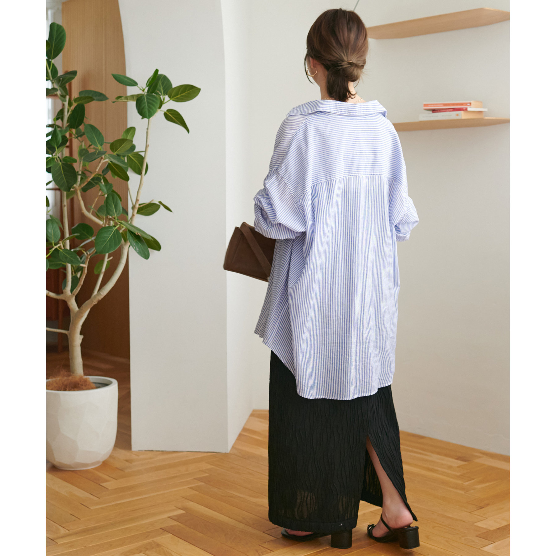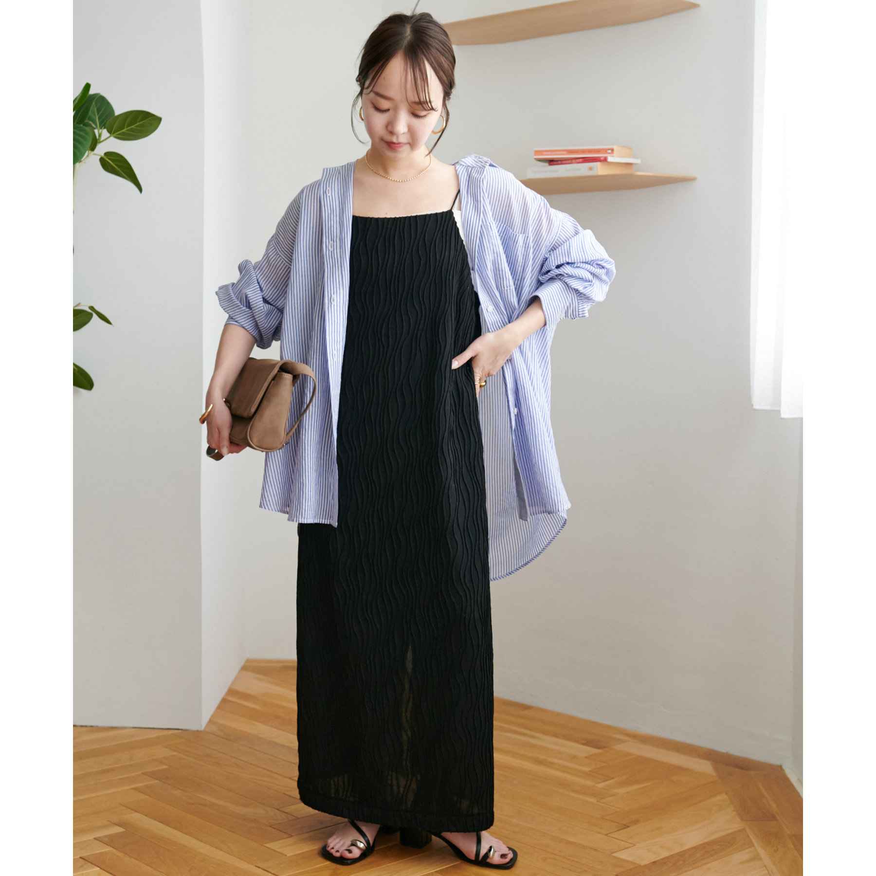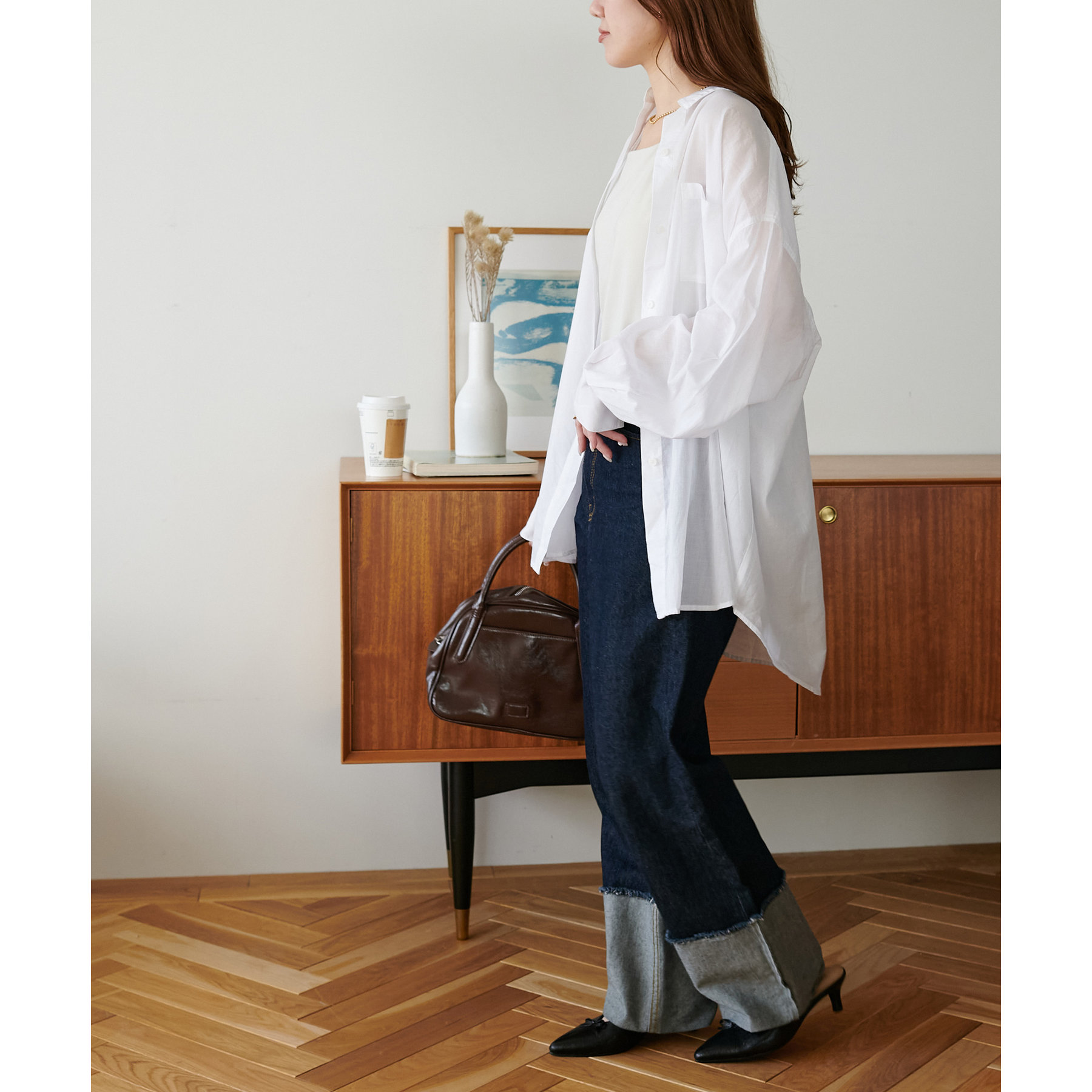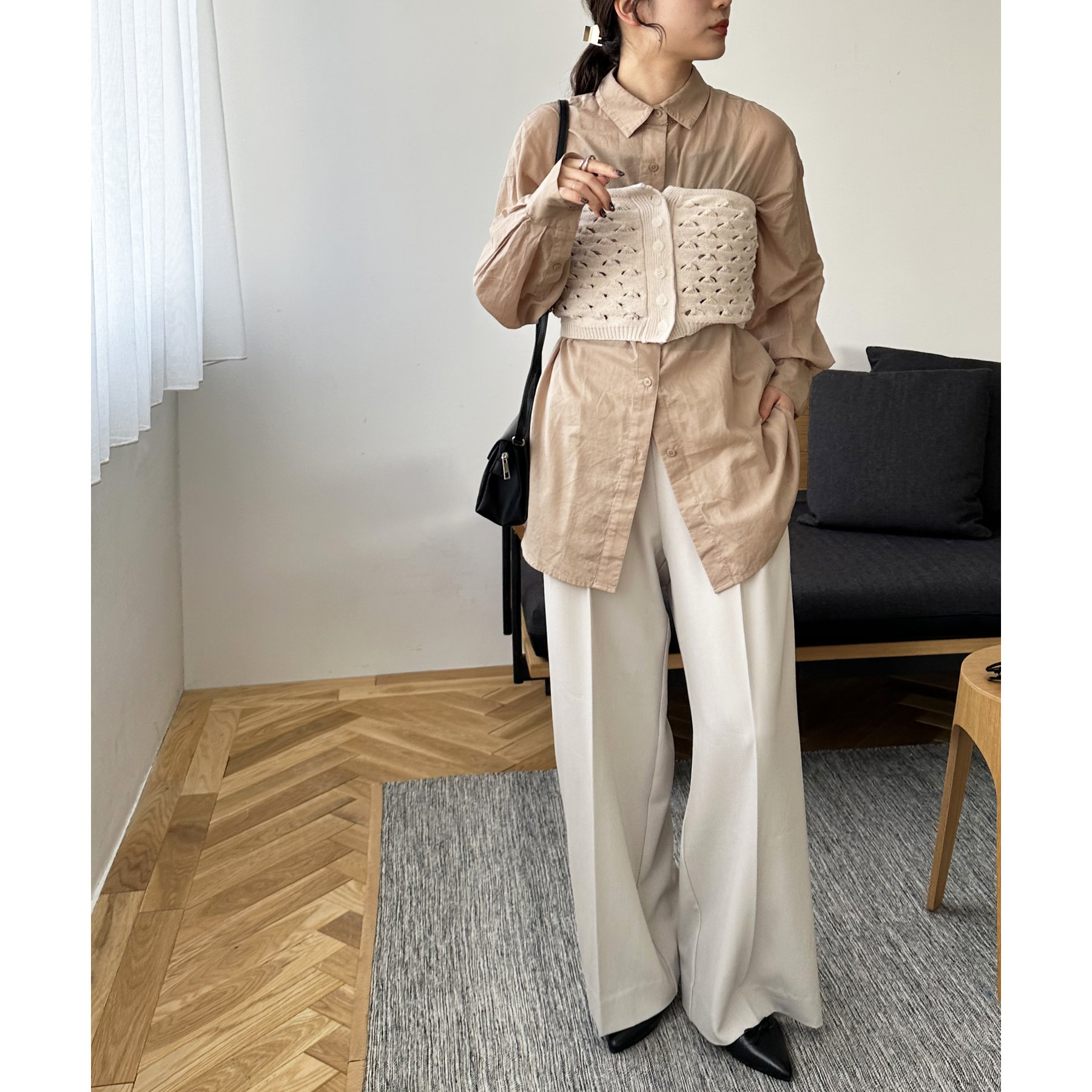 透け感があるので、やや長めの着丈ですが重たく見えにくく抜け感をプラスしてくれます!