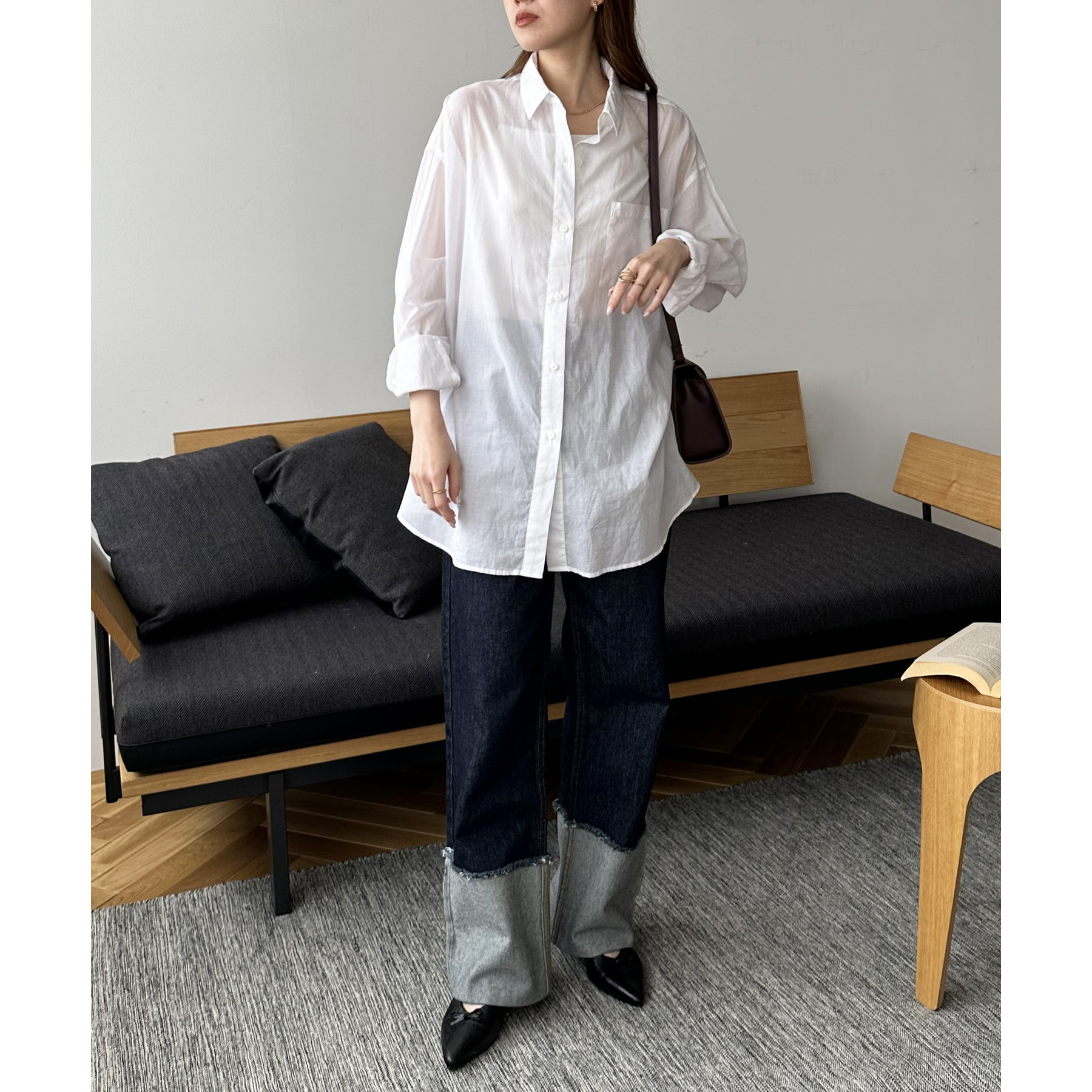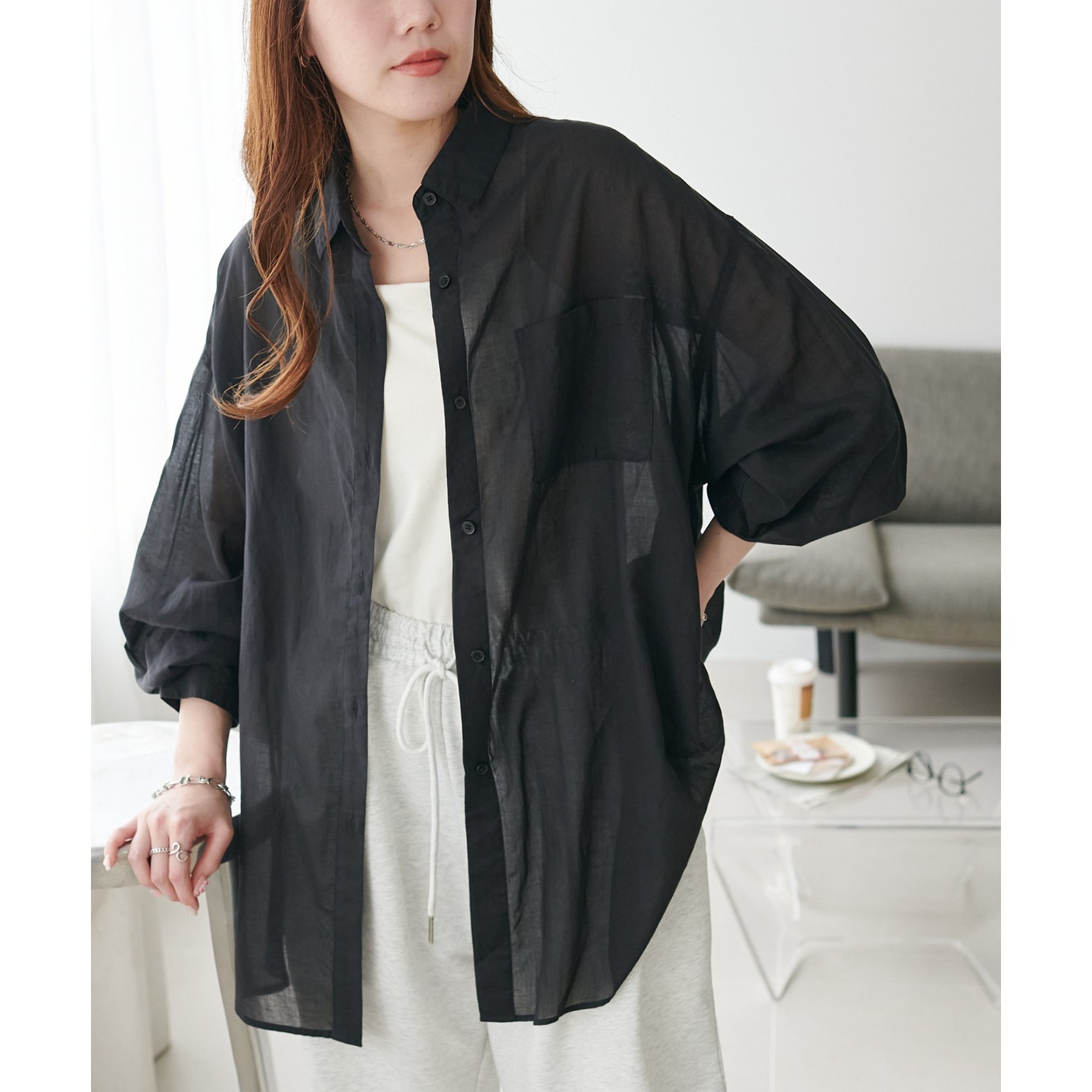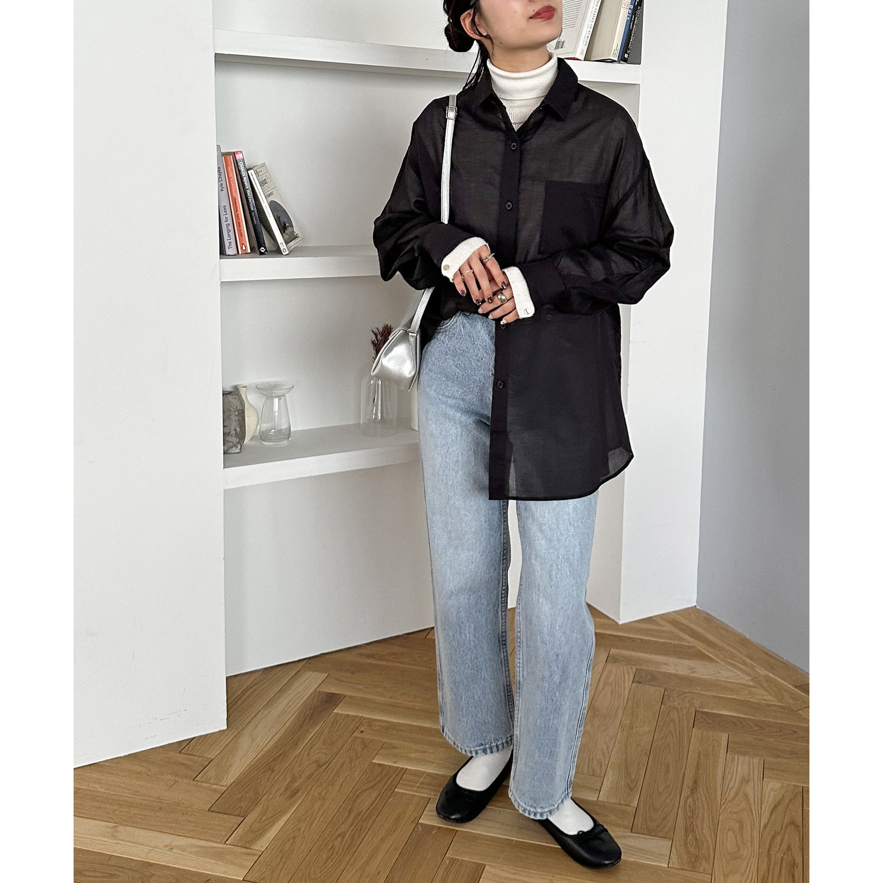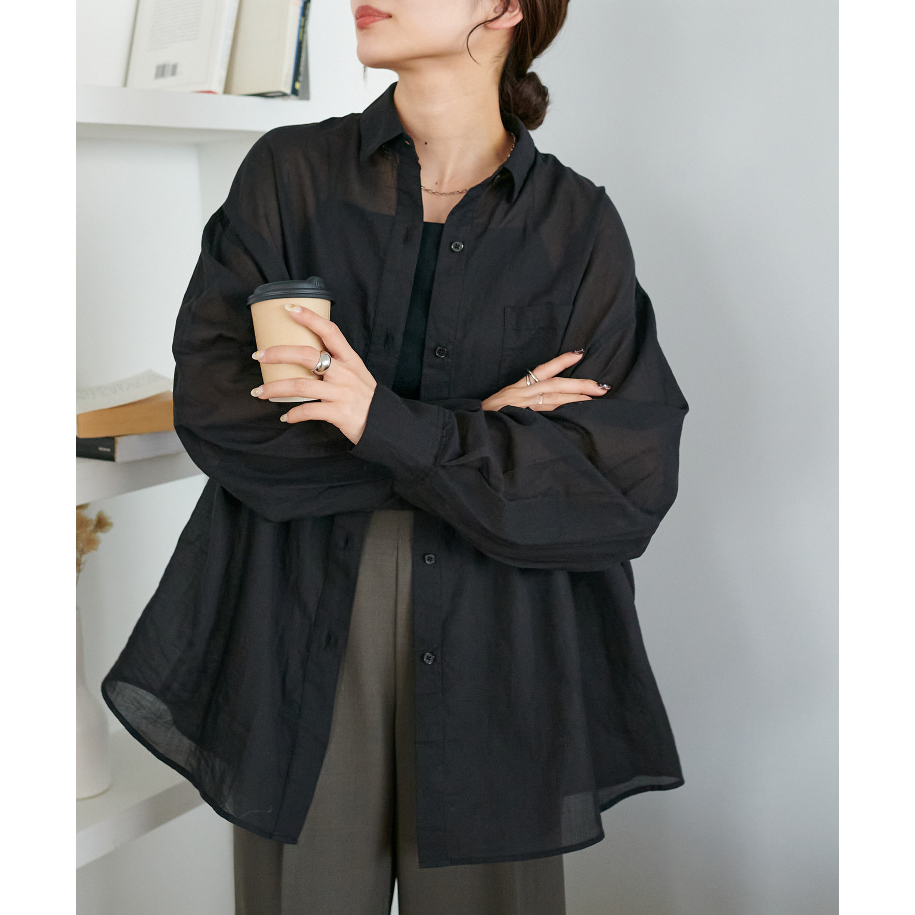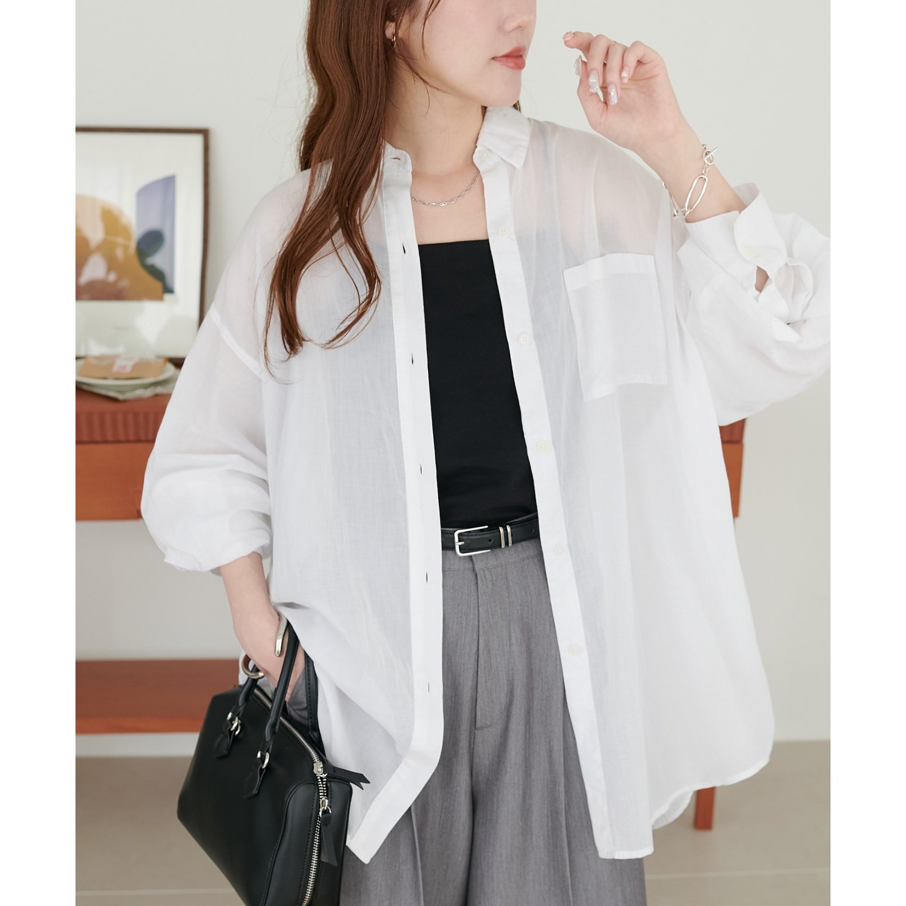 シンプルだからこそ、コーデに取り入れやすいシアーシャツ。
